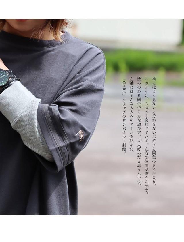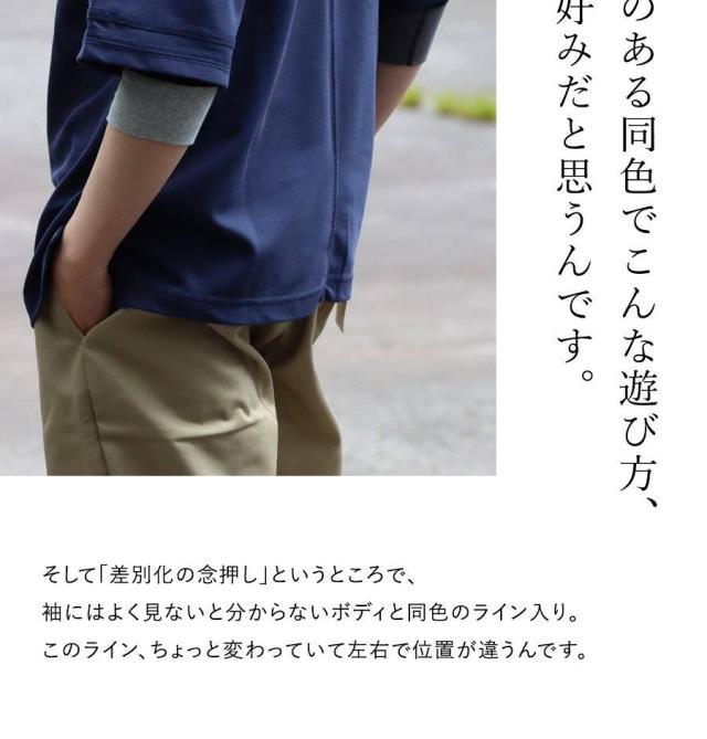 ・袖左右アシメライン×ワンポイント刺繍のアクセント。
