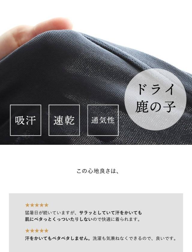 ・「接触冷感・吸汗・速乾・通気性」でサラっと涼しいドライ鹿の子地。