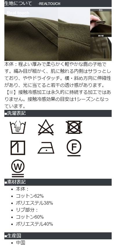 [素材]本体:コットン62% ポリエステル38% リブ部分:コットン60% ポリエステル40%