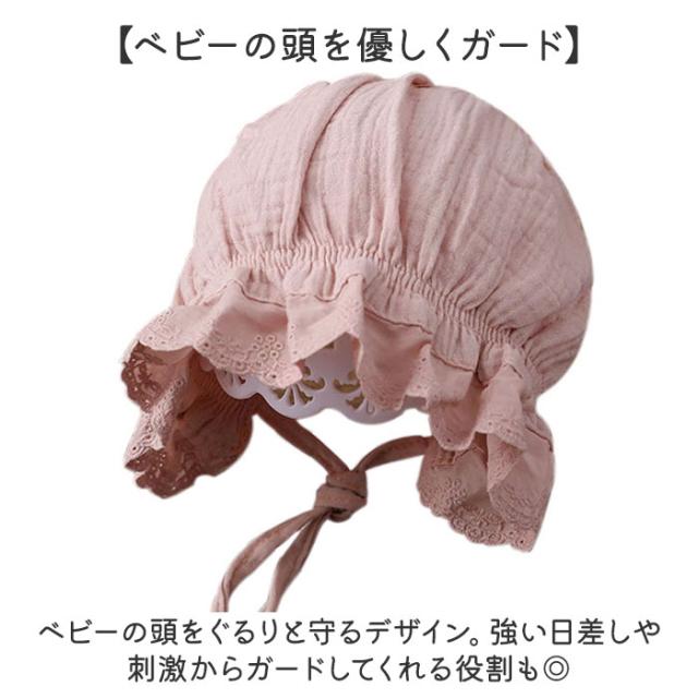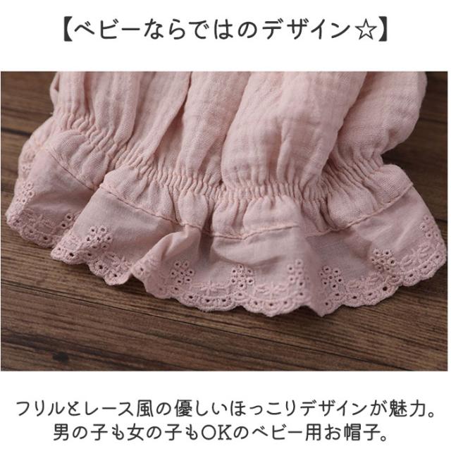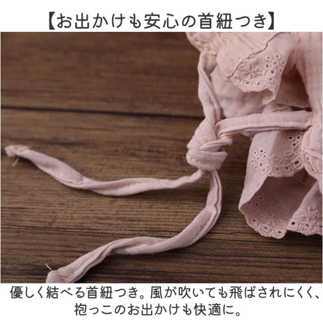 ベビー ボンネット 帽子 通販 ベビーボンネット 赤ちゃん帽子 ベビー帽子 ガーゼ帽子 キャップ ぼうし ガーゼ レース ひも付き 女の子 男の子 男女兼用 赤ちゃん 上品 新生児 白
