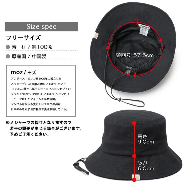 モズ moz バケットハット レディース ハット バケハ 帽子 あご紐付き 顎紐 サファリハット アウトドアハット 刺繍 春夏 日よけ 洗える 北欧 ハット帽 ぼうし 刺繍デザイン ヘラジカ コットン あご紐取り外し可 2WAY 深め 春 夏 日除け 日差し 紫外線対策 北欧ブランド 北欧系 アウトドア 公園 カジュアル おしゃれ 手洗い可