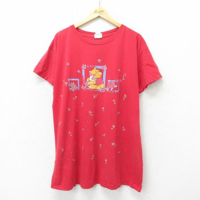 古着 半袖 ビンテージ Tシャツ レディース 00年代 00s ディズニー DISNEY くまのプーさん 胸ポケット付き Vネック 黒 ブラック 中古 古着