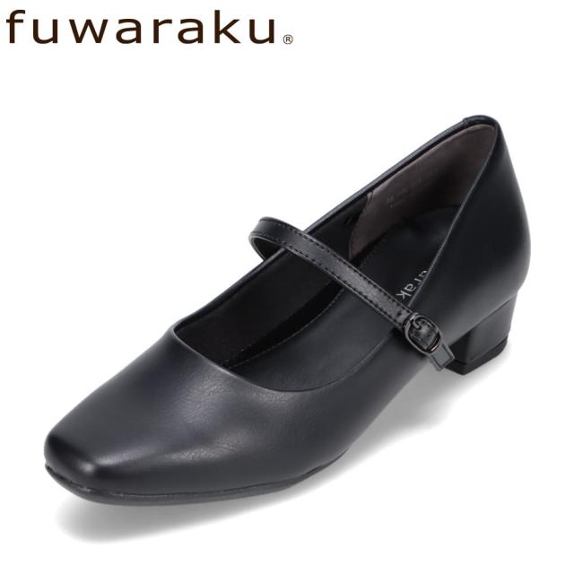 ベーシックパンプス ストラップ付 レディース 防水 雨 梅雨 幅広 3E ゆったり 疲れにくい 通気性 ムレにくい 防滑 滑りにくい 抗菌 消臭 静音ヒール 静か 通勤 仕事 ビジネス 営業 受付 就職活動 リクルート スクエアトゥ シューズ 靴 ブラック フワラク fuwaraku FR-1109