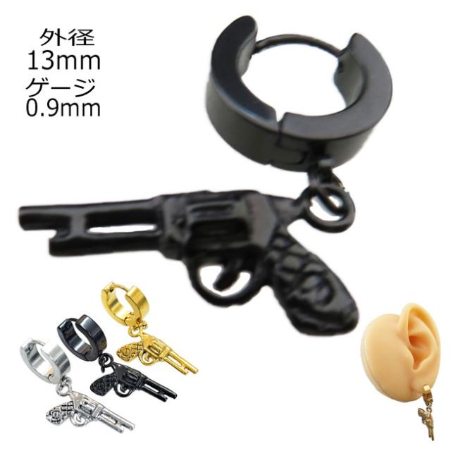 ピアス メンズ 拳銃 ピストル フープピアス リングピアス 13mm サージカルステンレス 片耳1個売り