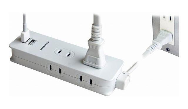 ●4口のACコンセントとUSB2ポートで最大6製品の使用が可能。USB付き電源タップです。