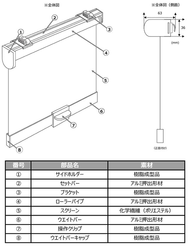 | 簡単取り付けロールスクリーン 【つっぱりポール取付ブラケット付き】 サイズ表 |