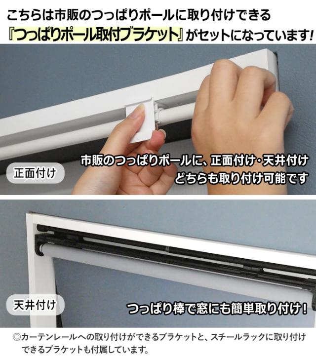 ロールスクリーン 突っ張り 簡単取り付けロールスクリーン つっぱりポール取付ブラケット付き 約 幅75cm×高さ180cm 部品セット DIY トーソー カーテンレール用 スチールラック用 ブラケット付き