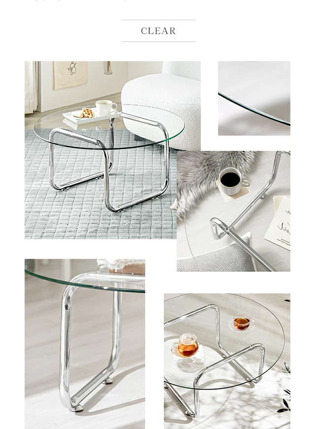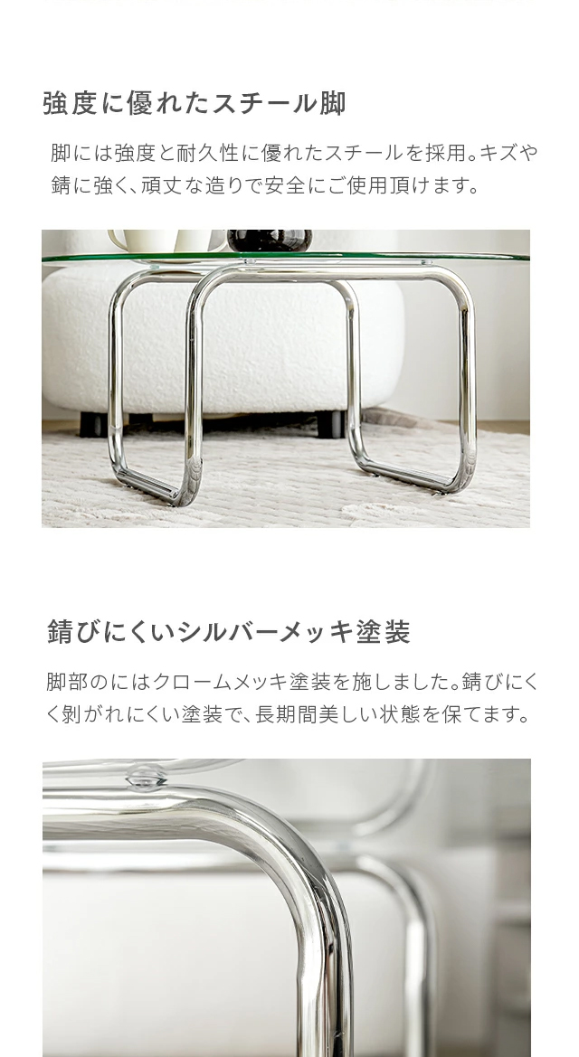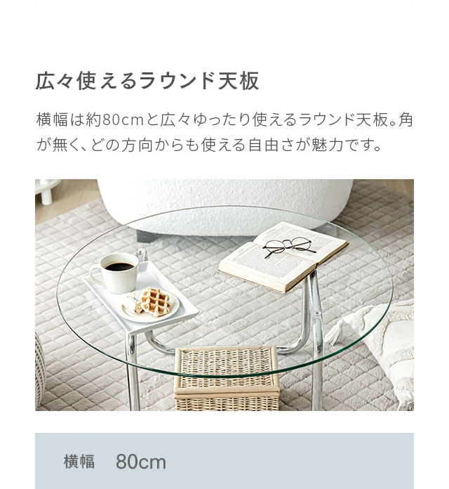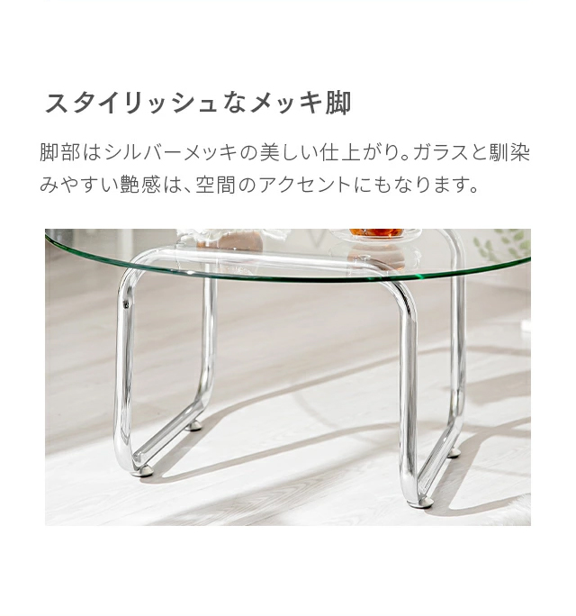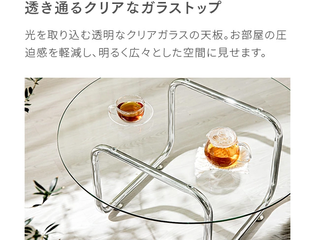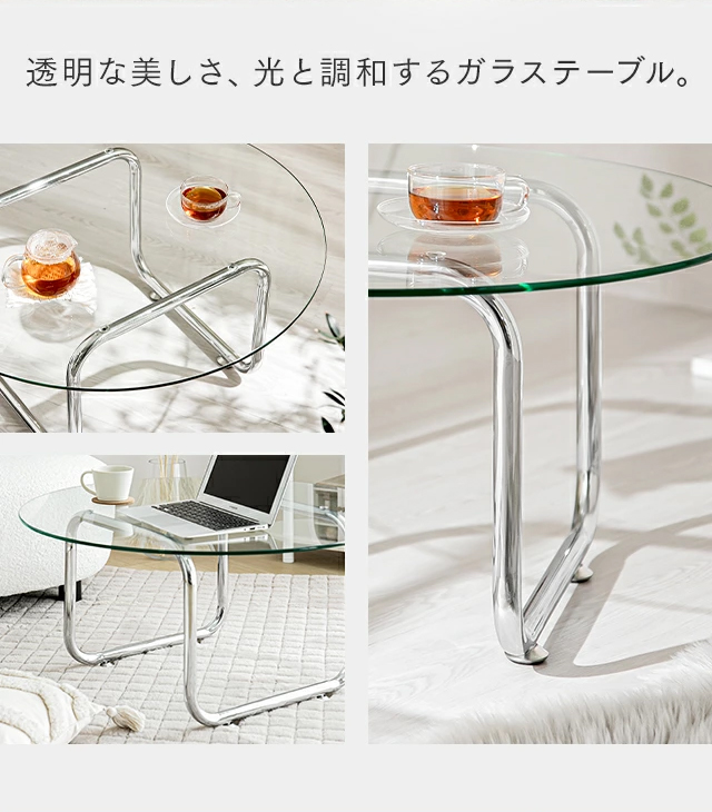 テーブル ローテーブル ガラス ガラステーブル 丸 コーヒーテーブル 幅80 リビング おしゃれ センターテーブル ガラス リビングテーブル 円形 ガラス天板 韓国 Y2K インテリア 北欧 一人暮らし シルバー クリア