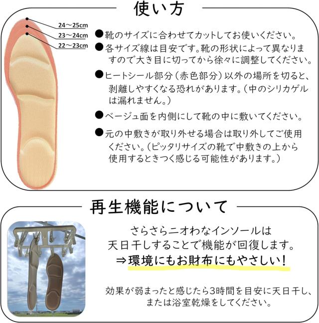 【繰り返し使えてエコ&経済的】天日干しで機能が回復するから長く使えます。安価なインソールを頻繁に買い替えるよりエコで経済的です。