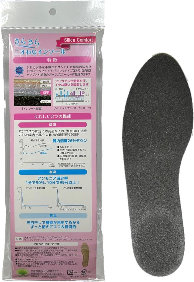 シリカコンフォート ムレ&足臭対策インソール フリーサイズ 22.0〜25.0cm 消臭 蒸れ対策 吸湿 繰り返し使える 再生 シリカゲル内蔵 通気性 洗える 脱臭