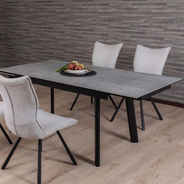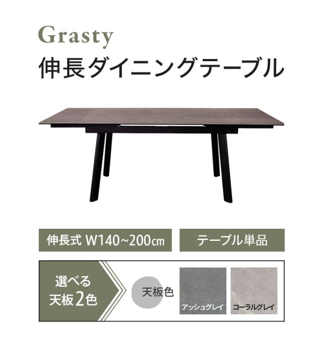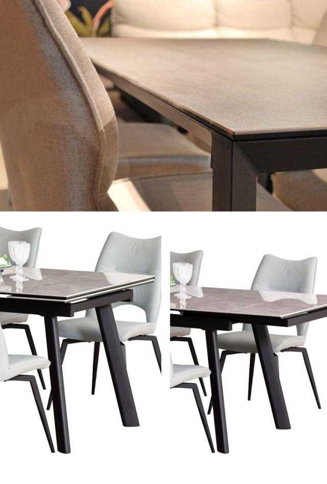 筑波産商 グラスティ 伸長ダイニングテーブル ダイニングテーブル 単品 伸縮 幅140~幅200 4人掛け 6人掛け 大理石調 伸縮テーブル 伸長式 ダイニング セラミック グレー 簡単操作 汚れにくい 光沢(代引不可)【送料無料】