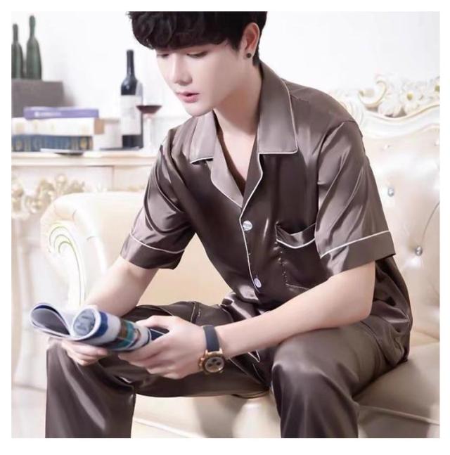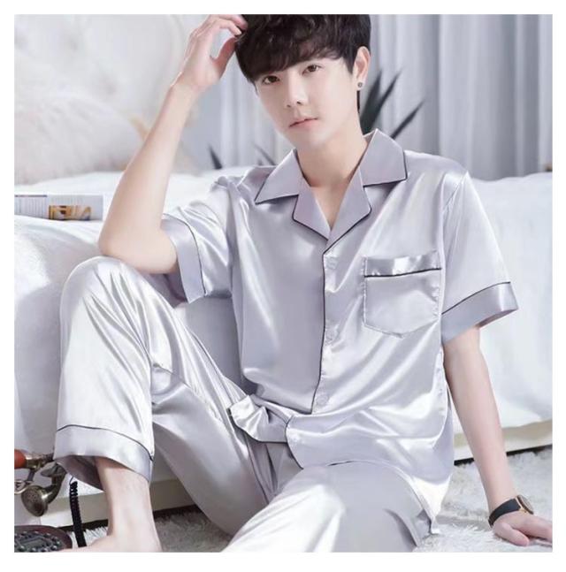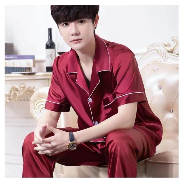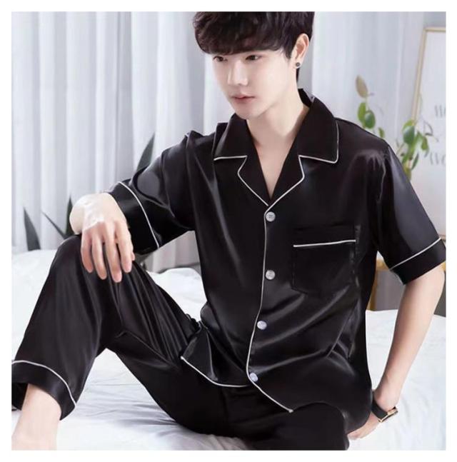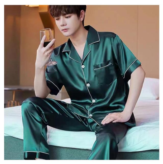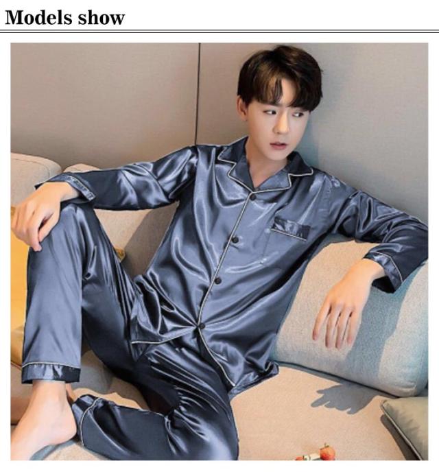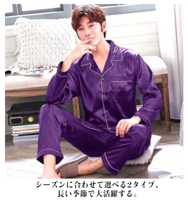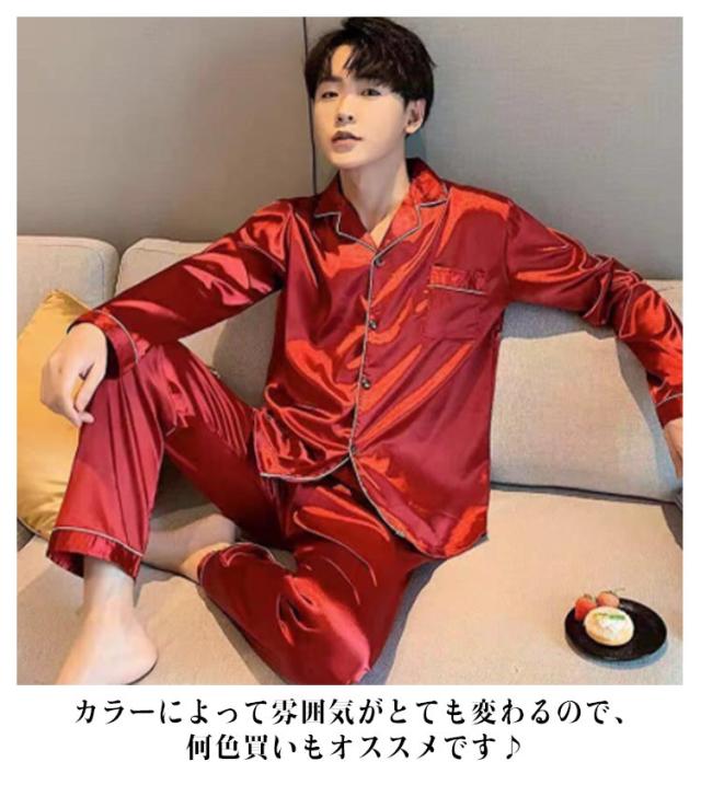 シルクタッチ ルームウェア サテンパジャマ メンズ ルームウェア 上下セット 長袖 半袖 前開き セットアップ 涼しい 光沢 ナイトウェア パジャマ シャツパジャマ 春夏 秋 シャツ ロングパンツ 大きいサイズ 無地 送料無料