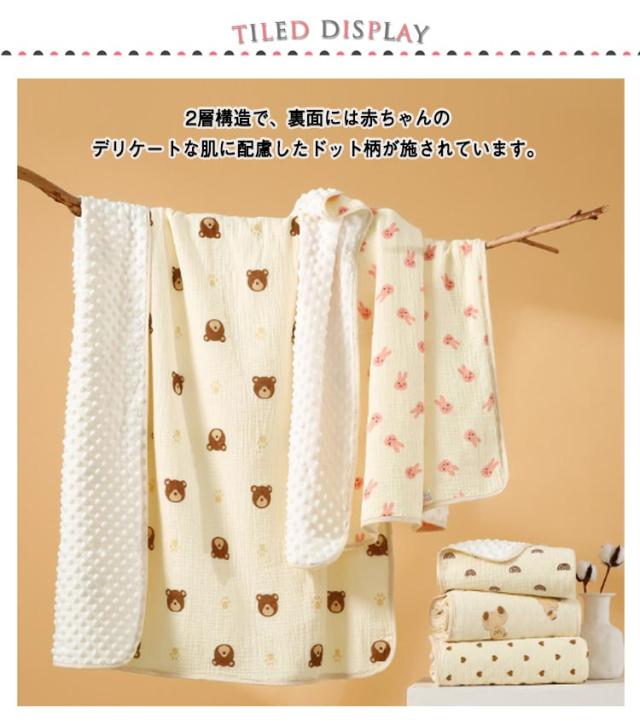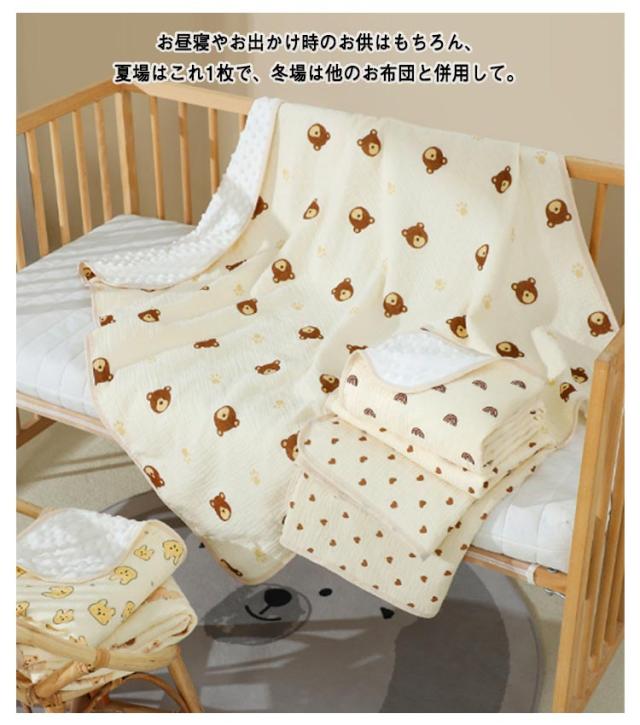 | 思わず心惹かれるさわり心地のブランケットが新登場。 2層構造で、裏面には赤ちゃんのデリケートな肌に配慮したドット柄が施されています。 表面には肌に優しく、通気性があり、軽くて暖かいです。 蛍光増白剤を使っていないので心配なくお使いいただけます。 洗濯機で洗えるので、気になった時にすぐに洗えます。 お昼寝やお出かけ時のお供はもちろん、夏場はこれ1枚で、冬場は他のお布団と併用して。 | |