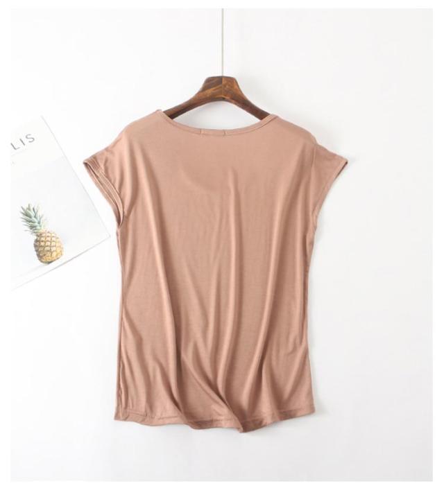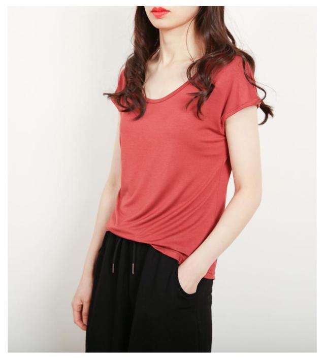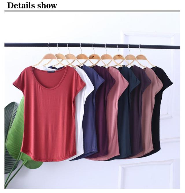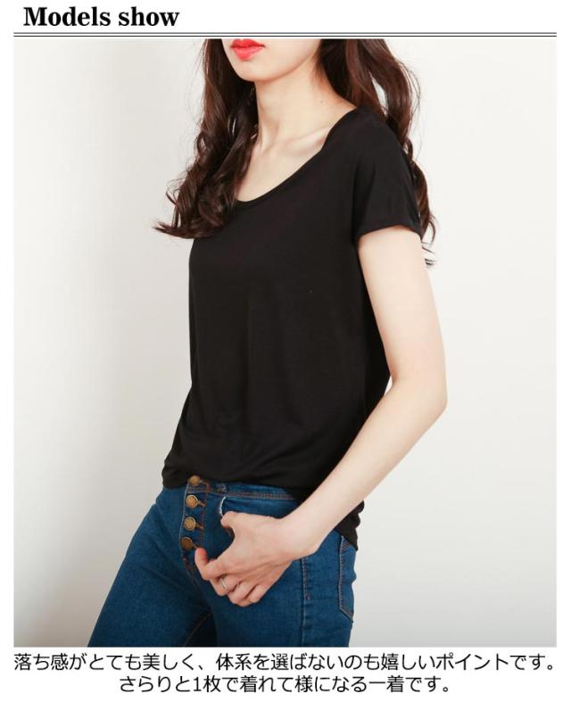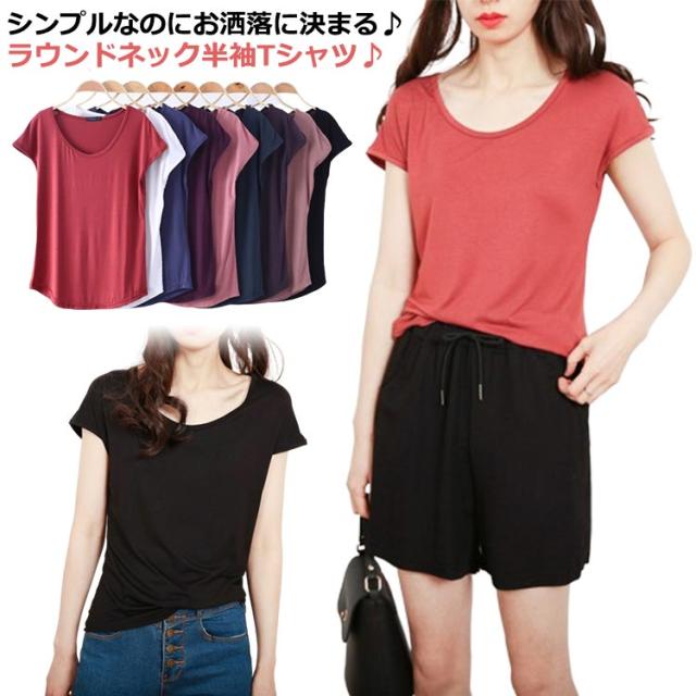 モダール Tシャツ レディース 半袖 涼しい トップス カットソー ラウンドネック インナー ゆったり 大きめ 無地 大人 女性 シンプル 薄手 柔らかい ストレッチ 伸びる 伸縮性 夏 部屋着 大きいサイズ 8色 通勤 重ね着 ギフト 送料無料