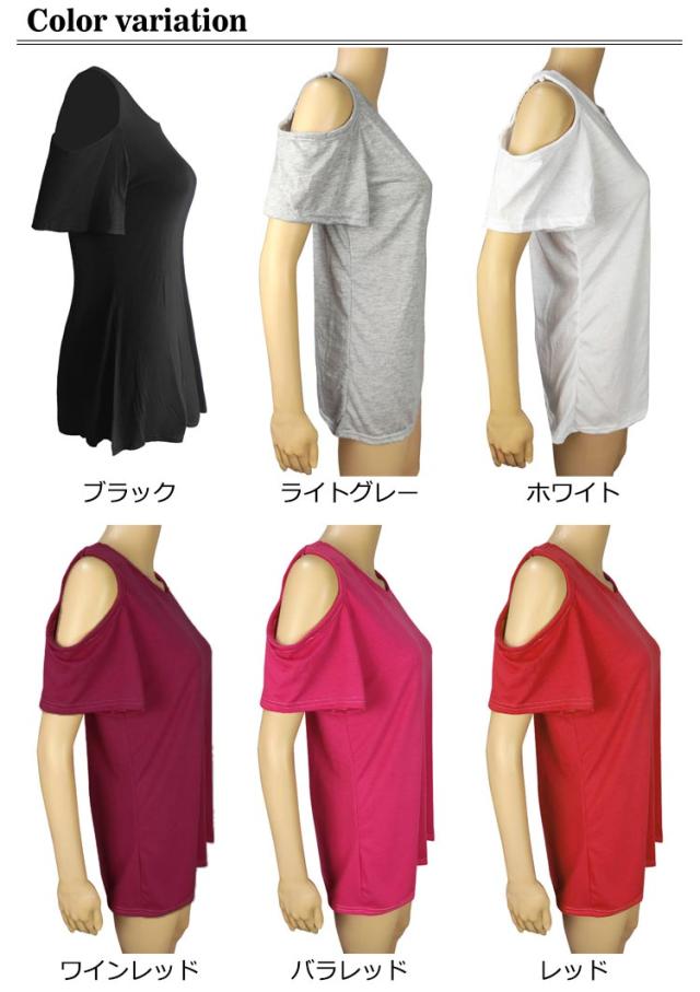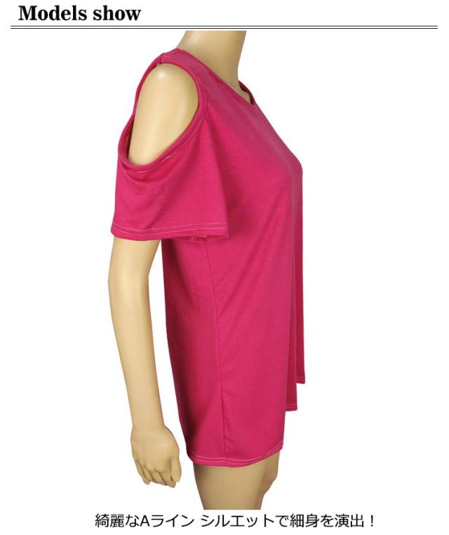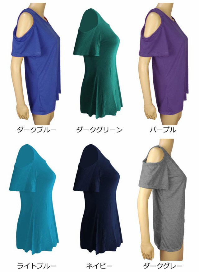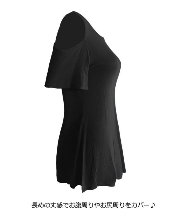 チュニック オープンショルダー チュニックTシャツ オフショル 肩開き 肩出し 可愛い uネック ロング 無地 5分袖 Tシャツ きれいめ シンプル 可愛い 大人 上品 カジュアル トップス 大きいサイズ 大人 女性 体型カバー 送料無料