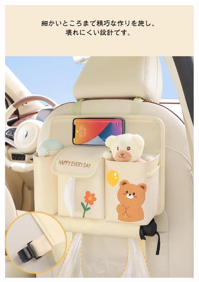 車載収納ポケット 車用 後部座席 収納バッグ 車用収納ポケット 大容量 シートバックポケット 多機能 省スペース 座席間収納バッグ 車用小物入れ 簡単に取り付け ティッシュ 傘 収納