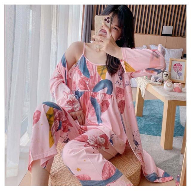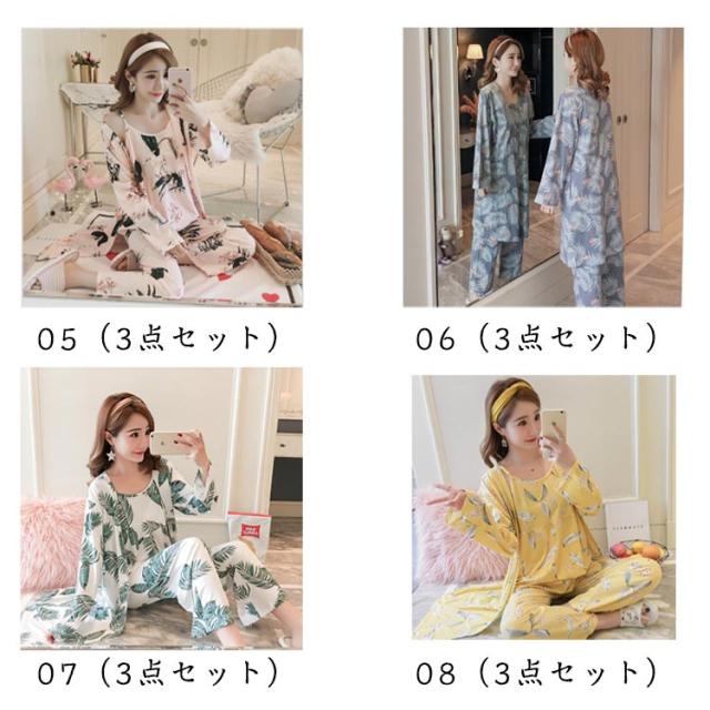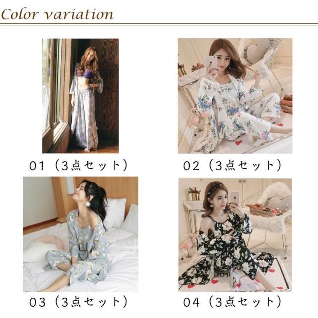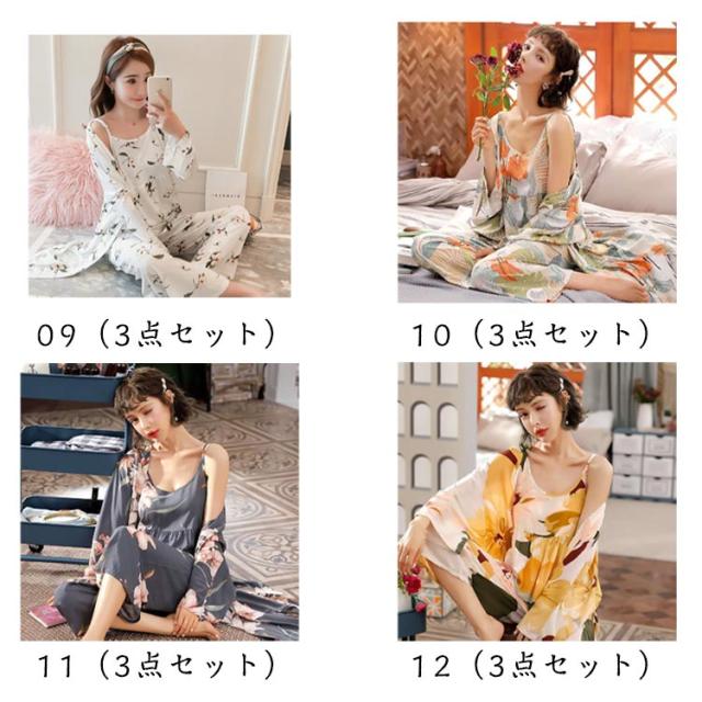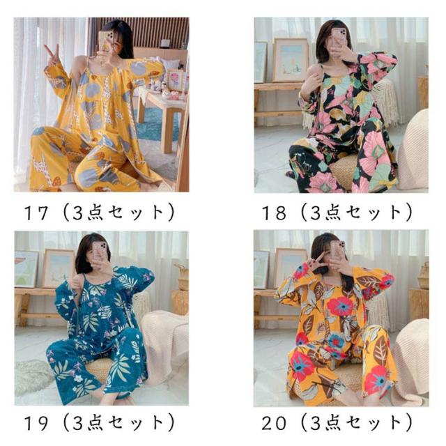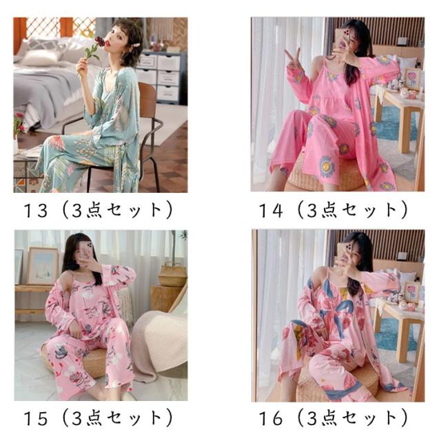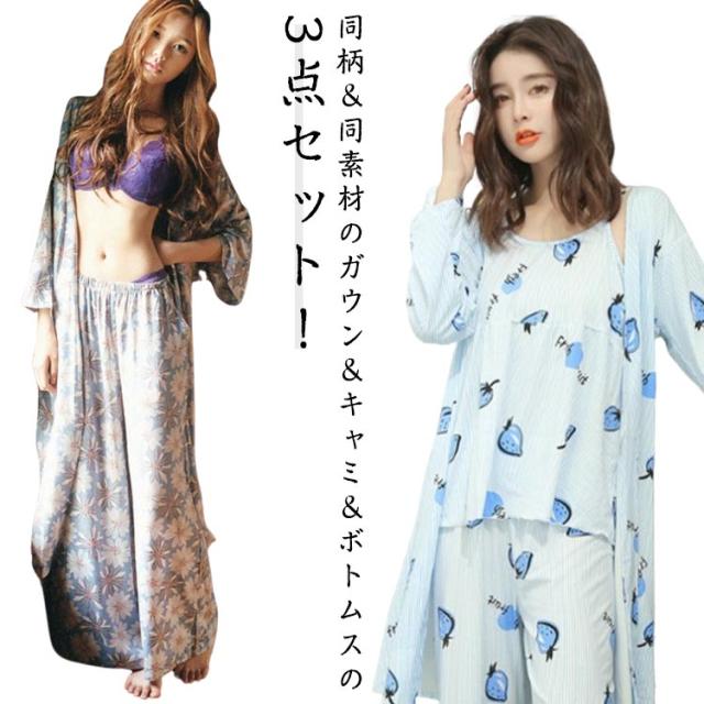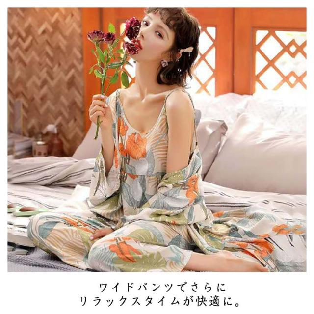 秋 かわいい カーディガン ルームウェア ワイドパンツ 花柄 春 夏 3点セット ナイトウェア パジャマ 羽織 ガウン ロング キャミソール 3点セット セットアップ 長袖 ネグリジェ 薄手 上下セット 部屋着 寝巻き ゆったり 体型カバー