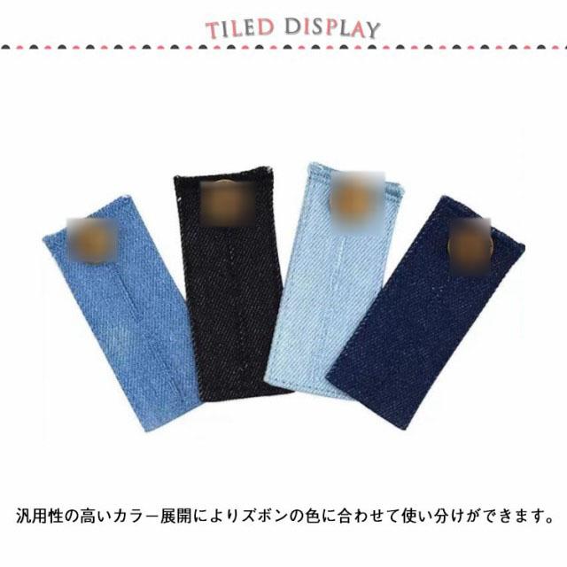 | ウエスト調整に役立つウエスト調整アジャスターです。 お手持ちのズボンのボタンに引っ掛けることでウエストを伸ばすことができ、おなかの締め付けが楽になります。 分厚いデニム生地に丁寧な縫製し、丈夫な仕上がりに! 汎用性の高いカラー展開によりズボンの色に合わせて使い分けができます。 お食事中や着席時のお腹の締め付けが楽になる! | |