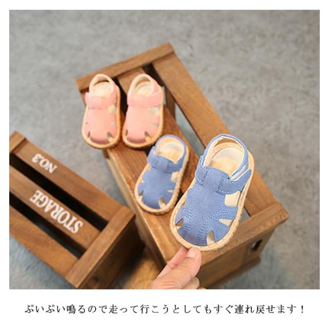 つま先保護 ベビーサンダル 女の子 赤ちゃん ファーストシューズ ベビーサンダル マジックテープ 音が鳴る 笛付き ベビーシューズ 水遊び 子供靴 春夏 滑り止め 送料無料