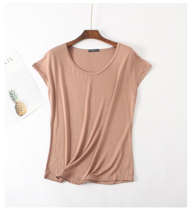 半袖 シンプル ゆったり Tシャツ ギフト 無地 ラウンドネック インナー トップス 涼しい 大きめ カットソー モダール レディース 女性 薄手 柔らかい ストレッチ 伸びる 伸縮性 夏 部屋着 大きいサイズ 8色 通勤 重ね着 大人