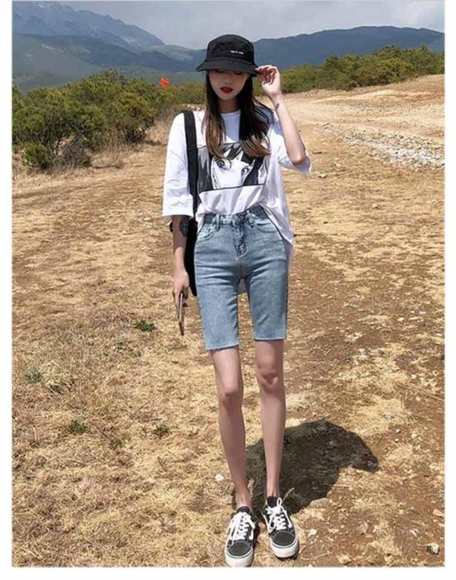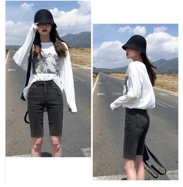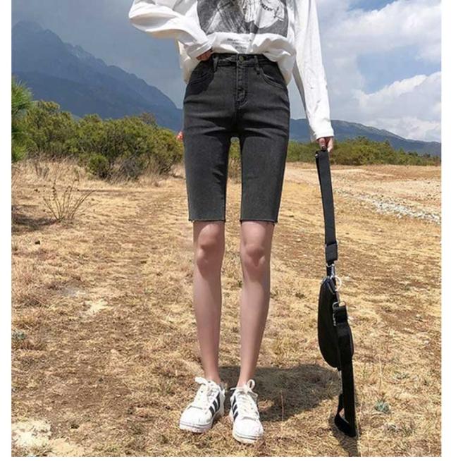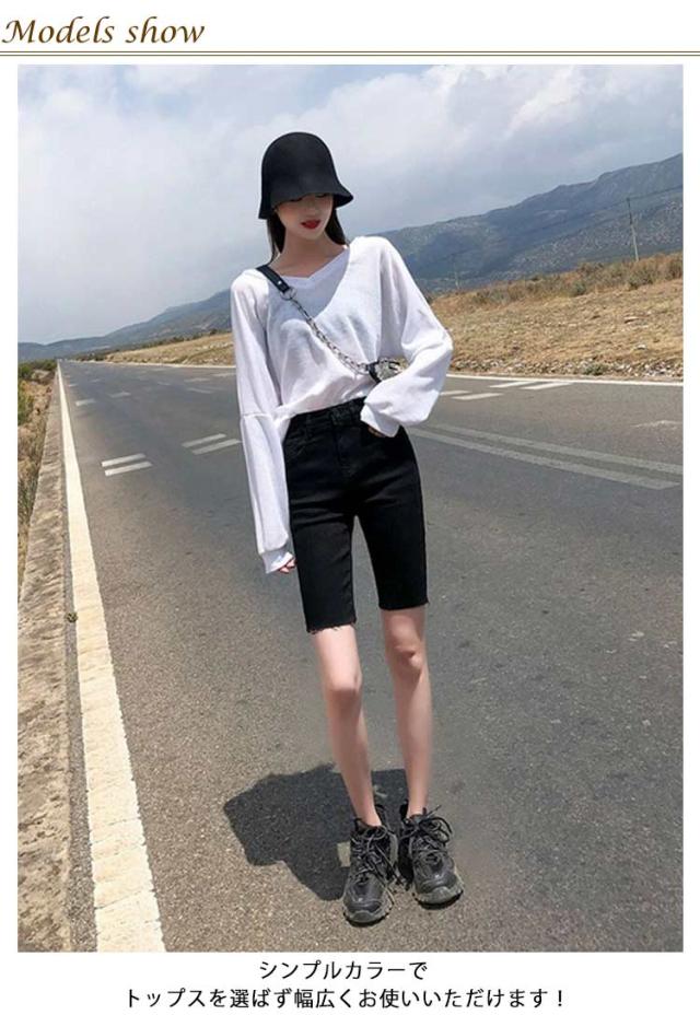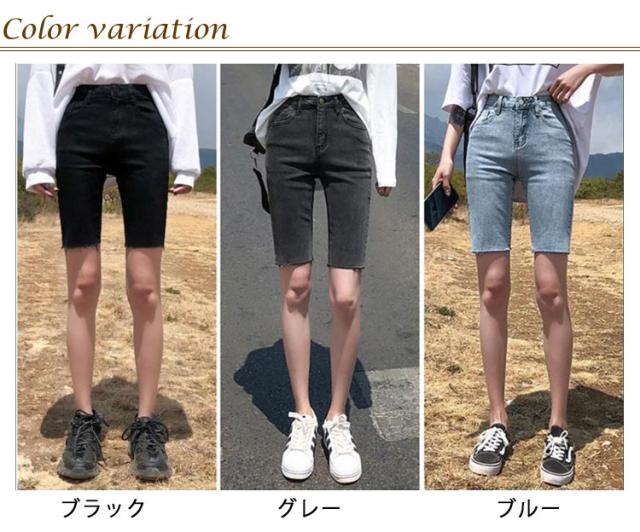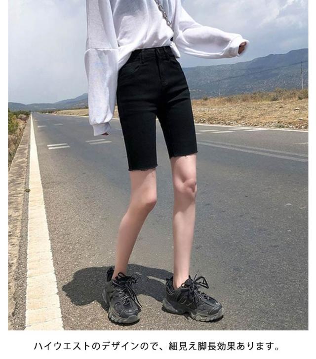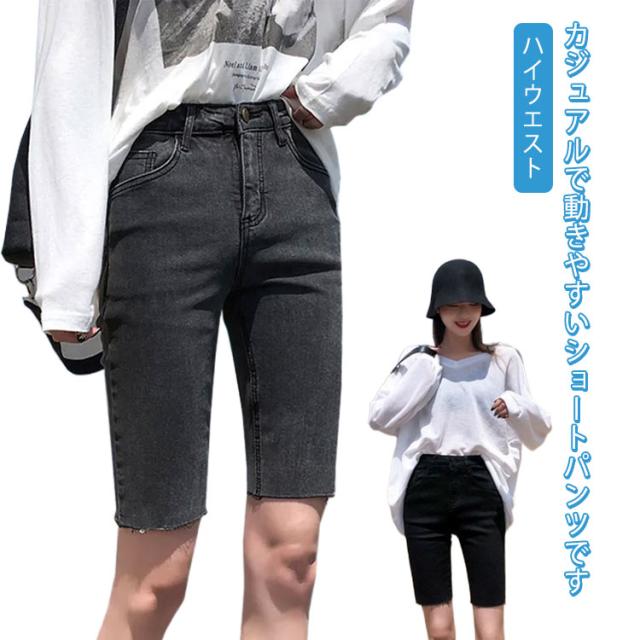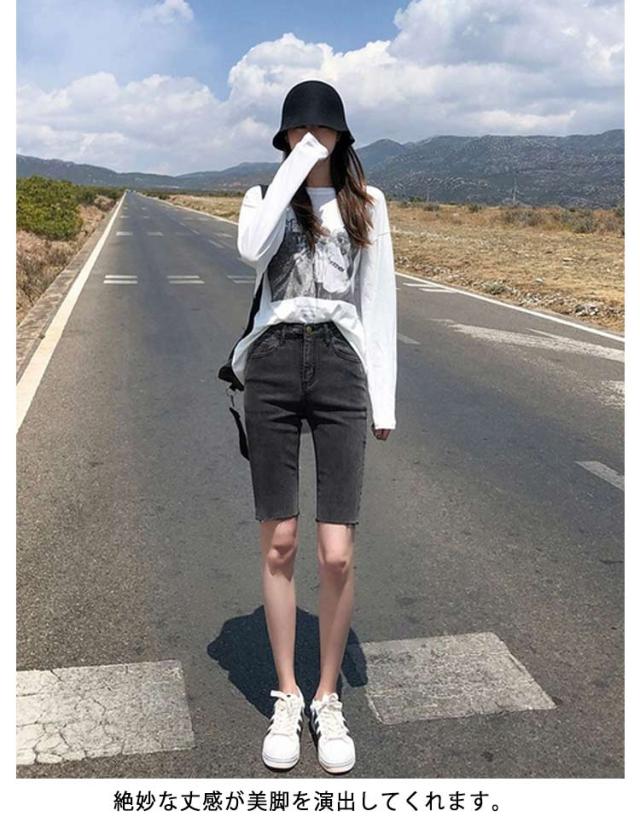 美脚パンツ ストレッチ レディース ショートパンツ 膝丈 5分丈 デニム ショーパン ハイウエスト ハーフパンツ ジーンズ 通勤 大人 デニム 短パン ボトムス 部屋着 スリム 無地 カジュアル 20代 30代