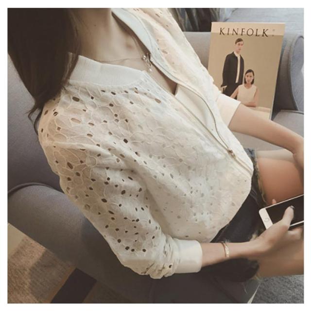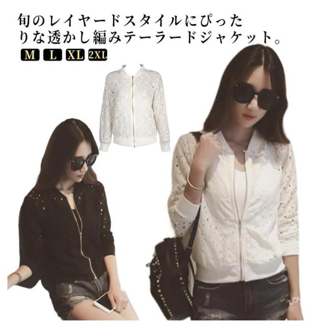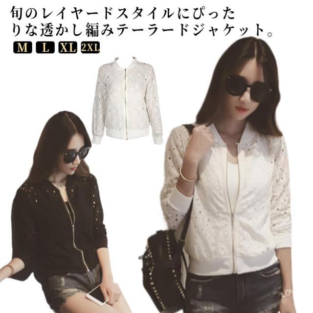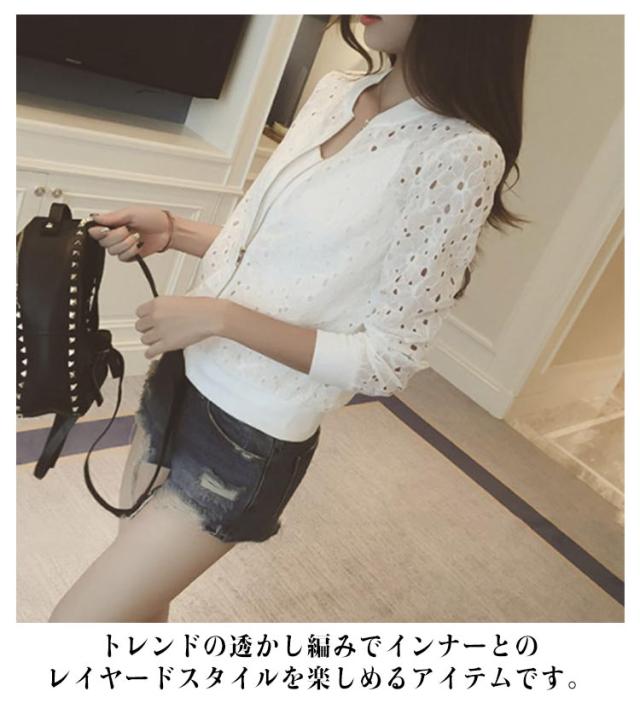 レディース トップス ノーカラー 長袖 春夏 テーラードジャケット ブルゾン ライトジャケット 透かし彫り 薄手 秋 メッシュ スカジャン テーラードジャケット アウター 羽織 ジップアップ 透け感 通気性 韓国ファッション
