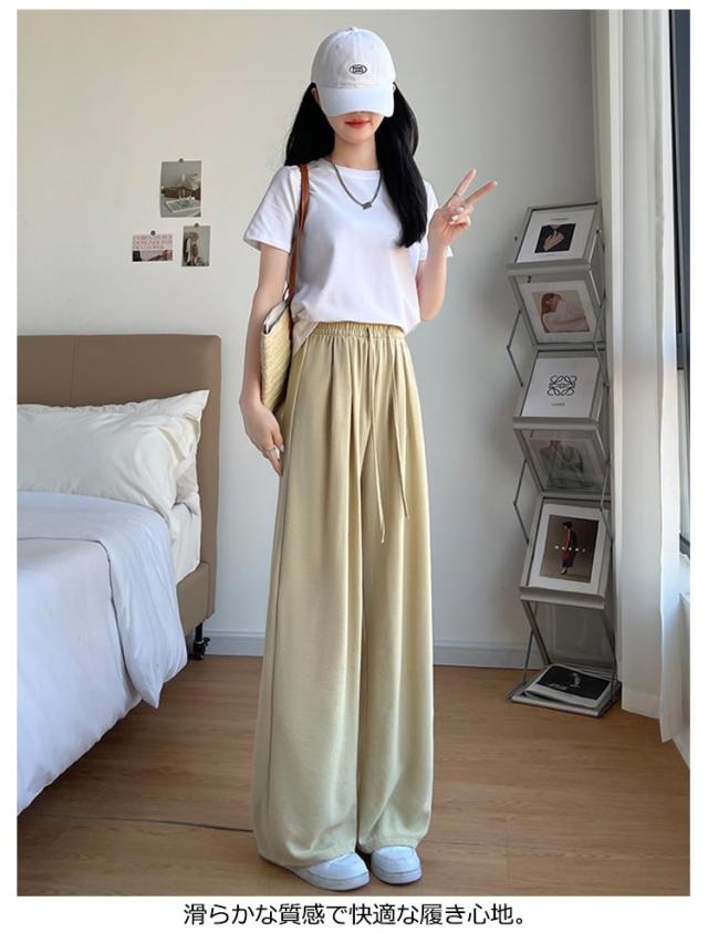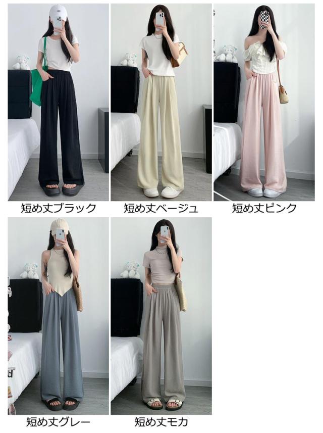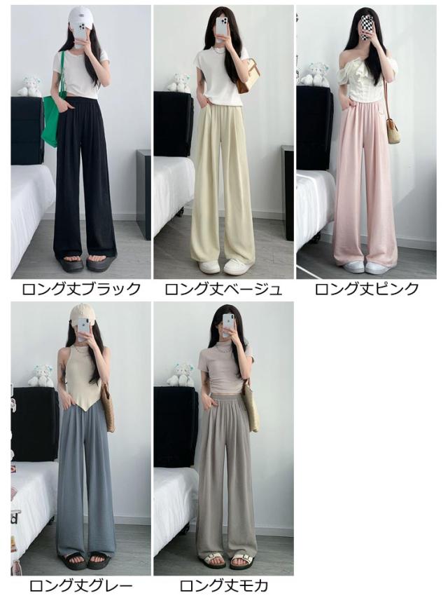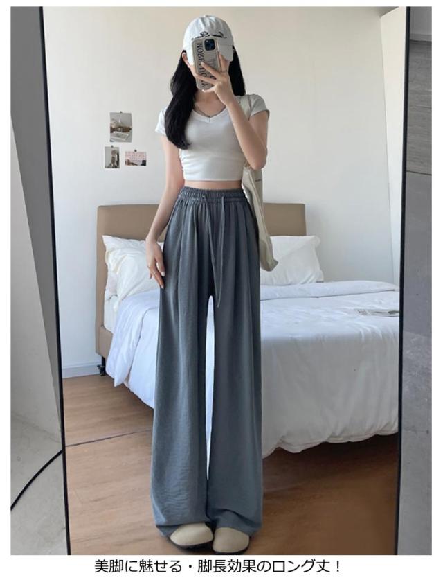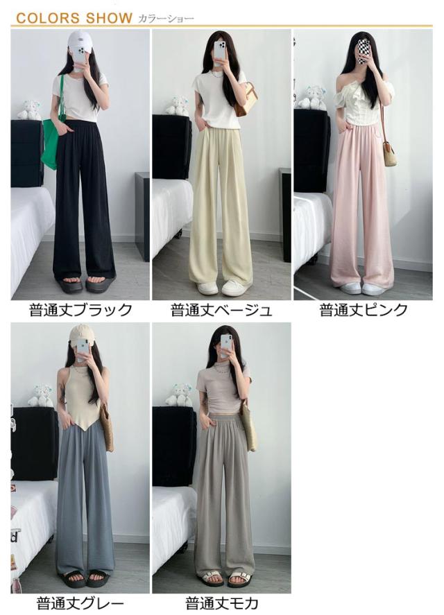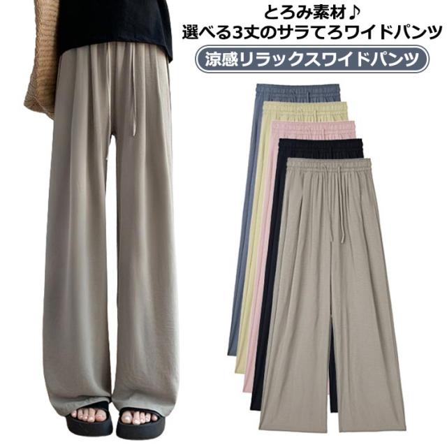 | とろみ素材♪選べる3丈のサラてろワイドパンツ 接触冷感で夏にも涼しく軽い! 日々の生活に◎リラックスサラサラ軽やかパンツ 滑らかな質感で快適な履き心地。 極ストレッチ&ウエストゴムで楽チン◎ 美脚に魅せる・脚長効果のロング丈! | |