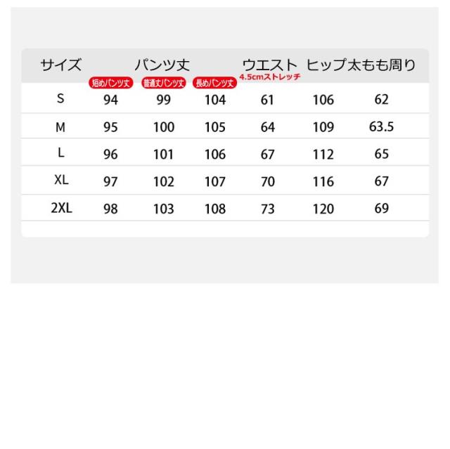 | サイズについての説明 | S適応体重40-47.5kg M適応体重48-55kg L適応体重55.5-62.5kg XL適応体重63-70kg 2XL適応体重70.5-77.5kg 短め適応身長158cm以下 普通丈適応身長159-165cm 長め丈166cm以上 ※サイズ表の実寸法は商品によって1-3cm程度の誤差がある場合がございます。 |