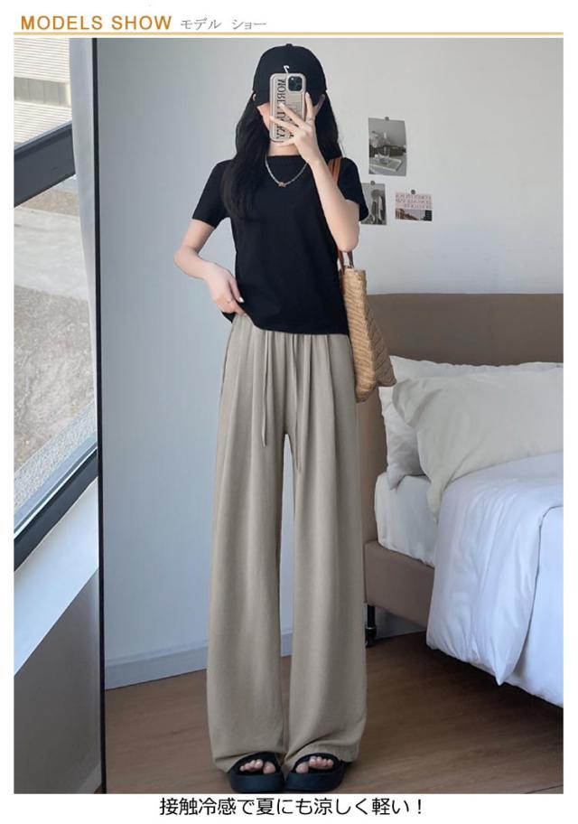 無地 きれいめ 大きいサイズ 涼感リラックスワイドパンツ レディース ルームウェア 冷感 ワイドパンツ パンツ 春夏 イージーワイドパンツ レディース ボトムス 低身長 高身長 夏物 涼しい ゆったり 伸縮 涼感リラックスワイドパンツ 春夏