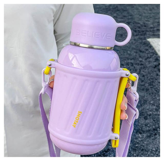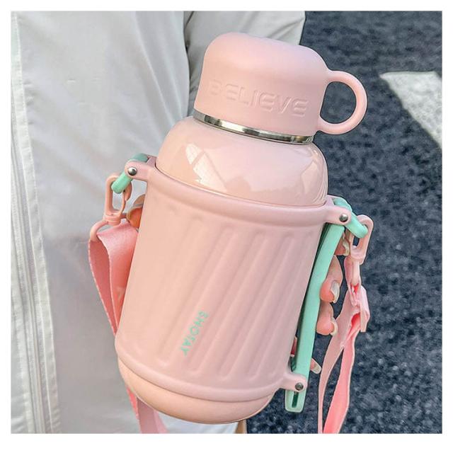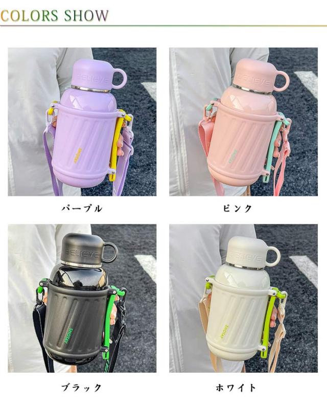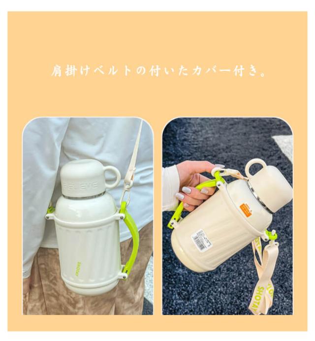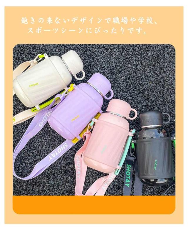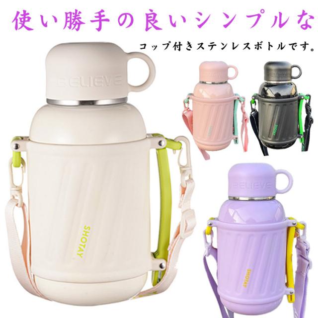 茶こし付き 遠足 カバー付き 保冷 コップ付き コップ飲み ショルダーストラップ 保温 水筒 ステンレスボトル 肩紐 800ml マグボトル お茶 キッズ かわいい 小学生 ピクニック 使いやすい 女の子 男の子 1000ml