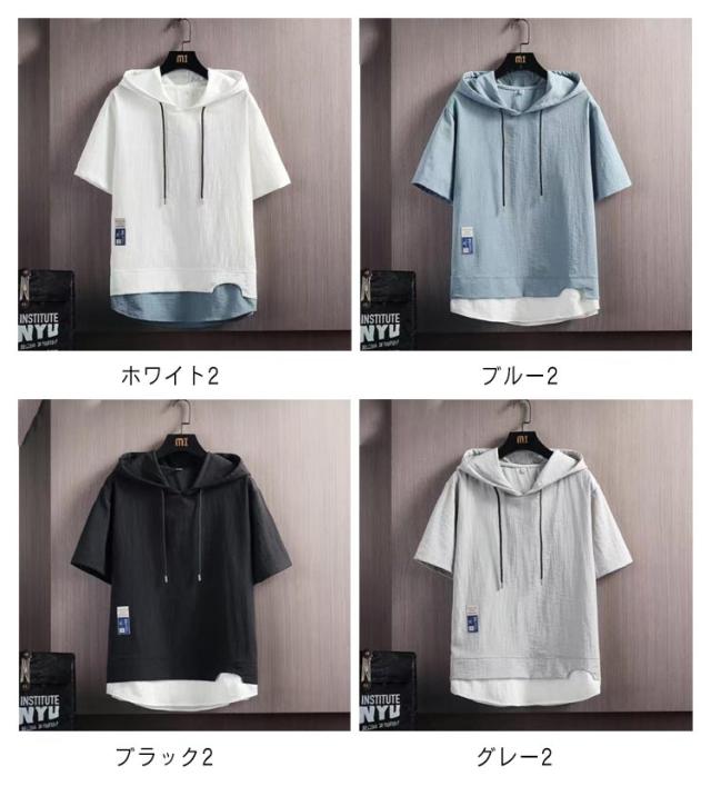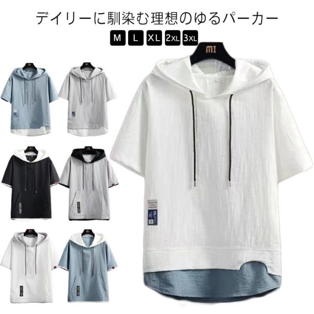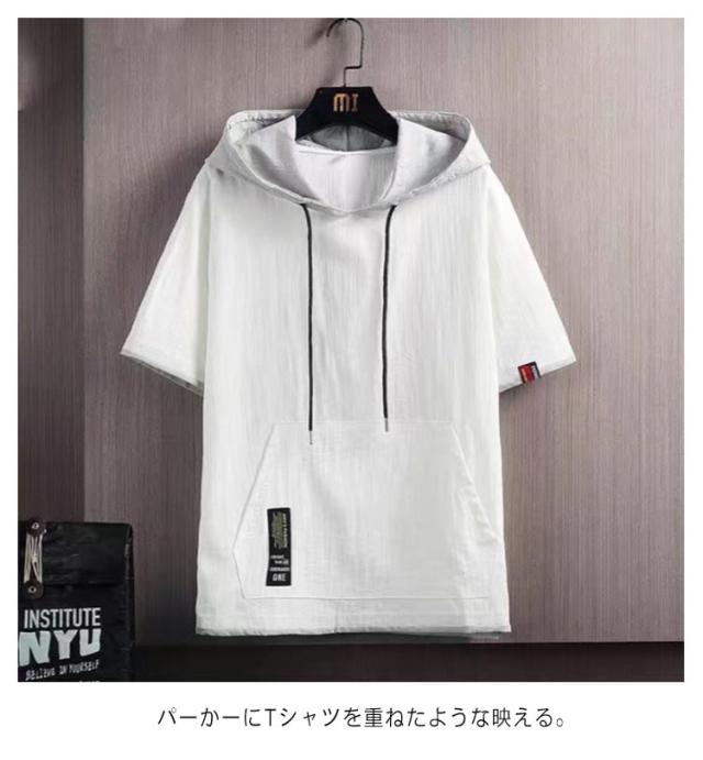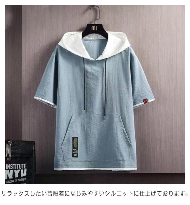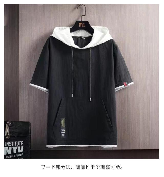 涼感 半袖パーカー パーカー 部屋着 メンズ 薄手パーカー 冷感 パーカ フェイクレイヤード 夏用パーカー パーカ 夏 フード付き サマーパーカー スポーツ 半袖 カジュアル 夏パーカー 薄手 男女兼用 シンプル 運動着 トップス 夏服 スポーティ 無地