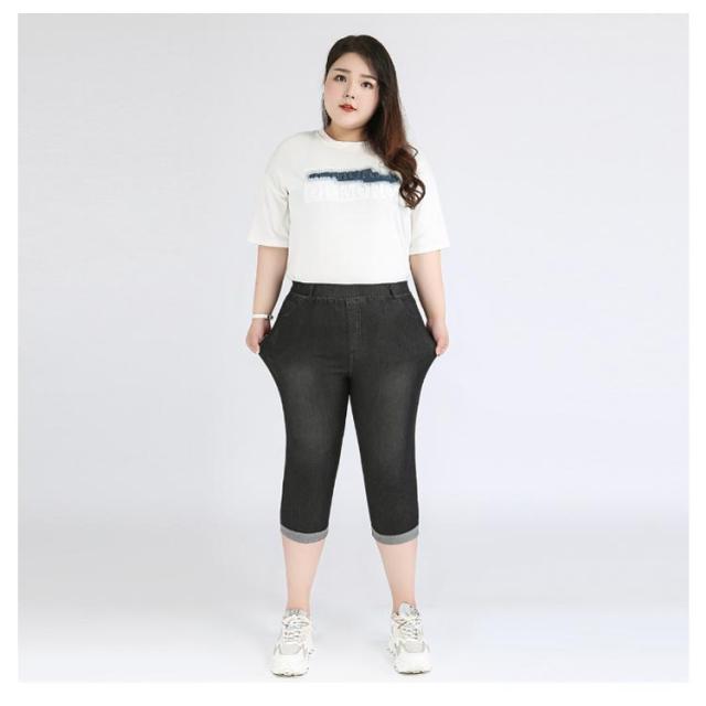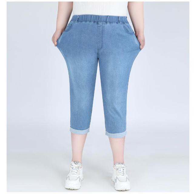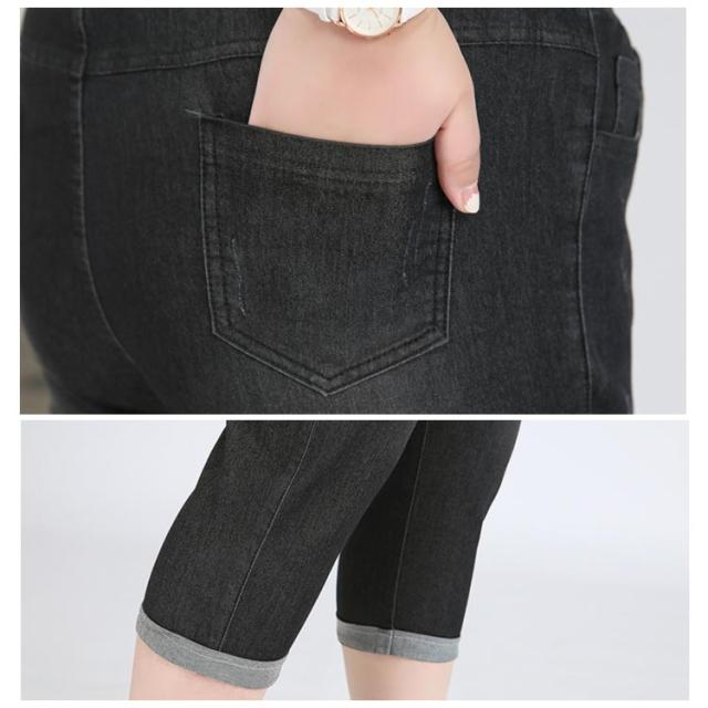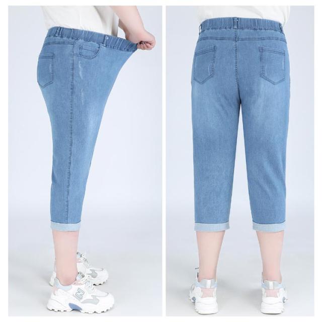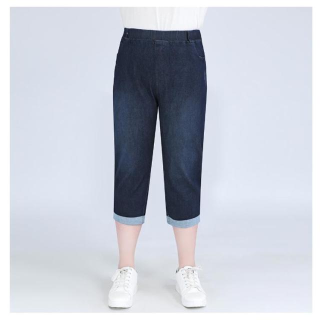 ロールアップ 大きいサイズ ジーパン ジーンズ クロップドパンツ 7分丈 ポケットあり 大きいサイズ 綿 デニム ウェストゴム コットン パンツ ズボン ボトムス ぽっちゃり 体型カバー レディース