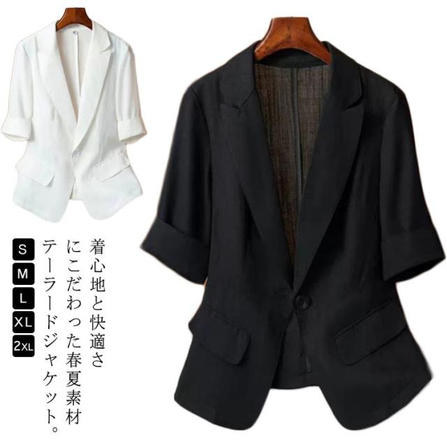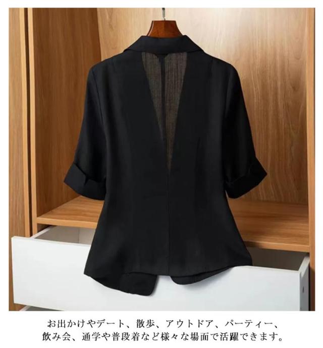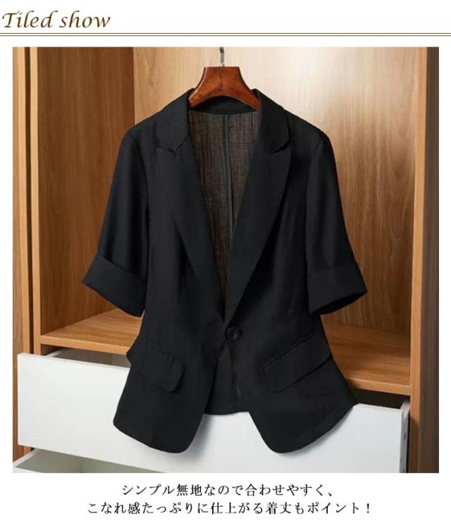 半袖 ジャケット レディース 薄手 スーツジャケット テーラードジャケット サマージャケット 春 夏 涼しい 軽量 洗える ショート丈 1ボタンジャケット ビジネス 通勤 オフィス カジュアル フォーマル シンプル 無地 送料無料