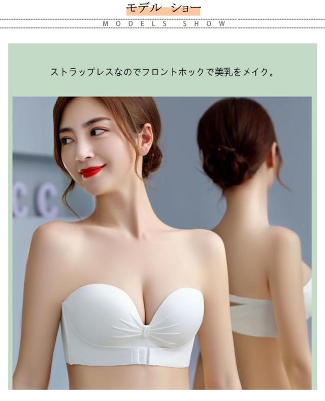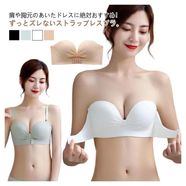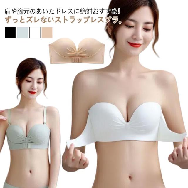 落ちない 谷間 ストラップレス ずれない バストアップ ブラ 紐無し ブラ ベアトップ フロントホック ノンワイヤーブラ チューブトップ ストラップレスブラ 紐なしブラ ストラップレスブラ 自胸 ブラジャー 育乳 脇肉 谷間メイク
