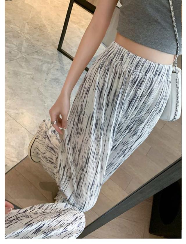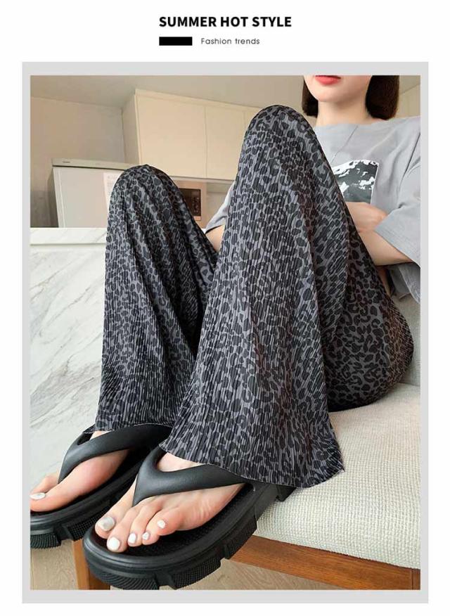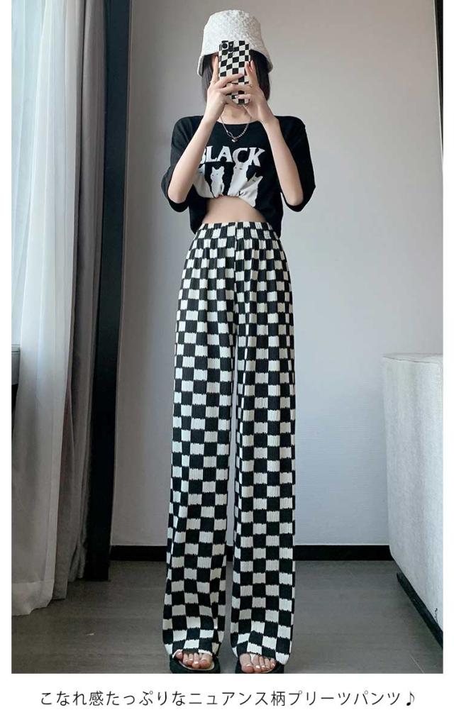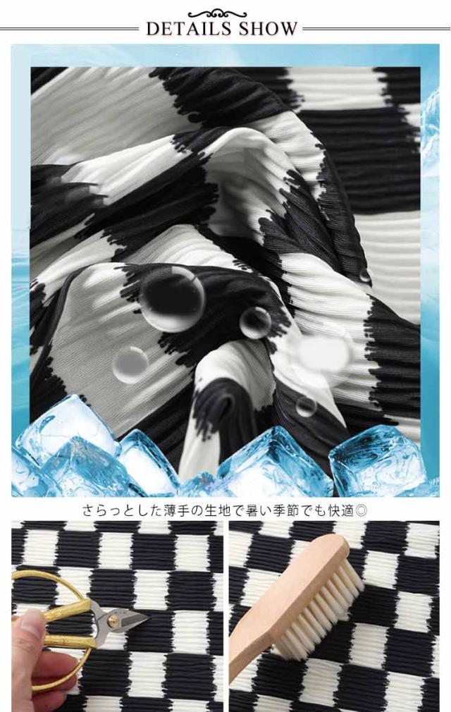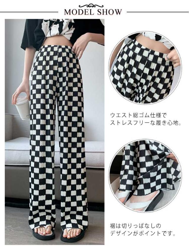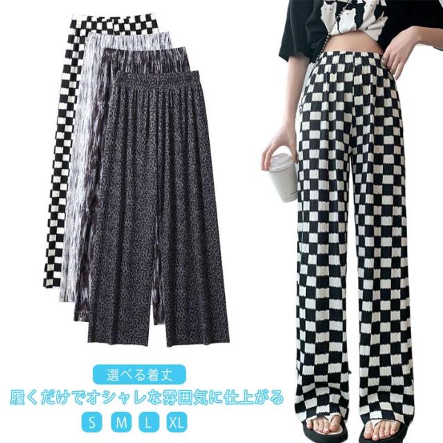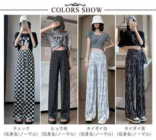 冷感 プリーツパンツ ワイドパンツ イージーパンツ きれいめ ボトムス 体型カバー ロングパンツ 総柄 セルフカット ハサミで切れる ウエストゴム 楽ちん レディース ワイドパンツ 薄手 夏 選べる着丈 大人カジュアル 低身長