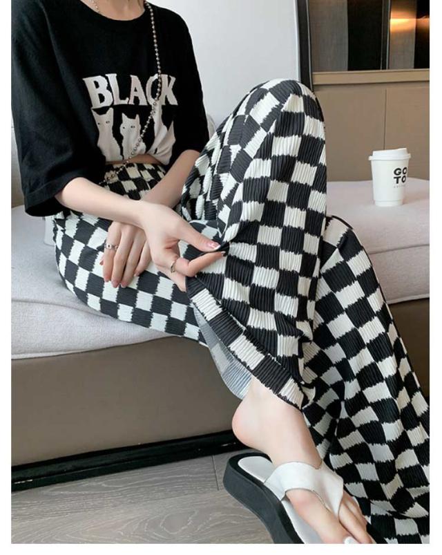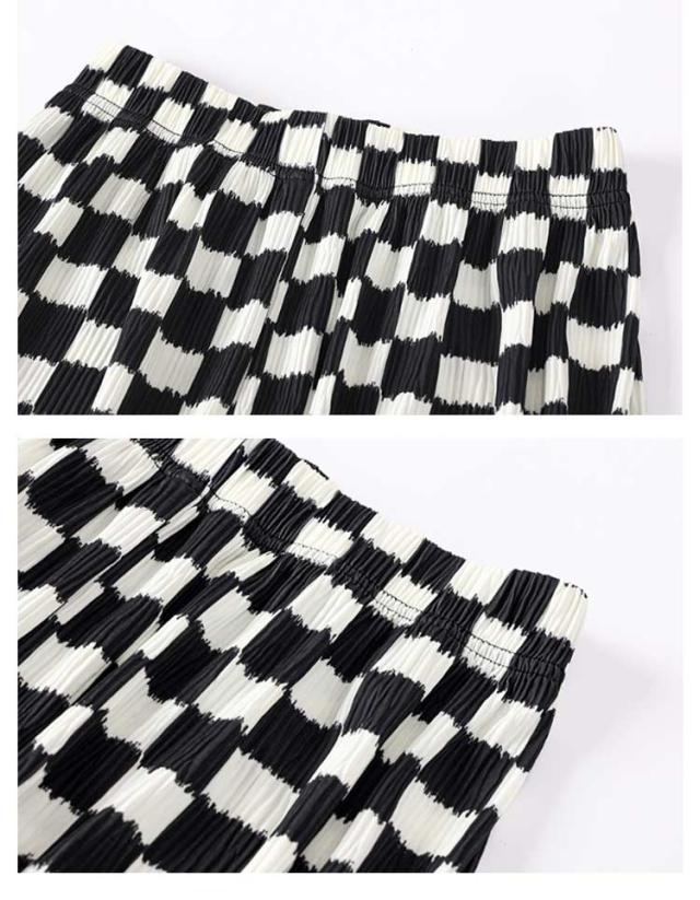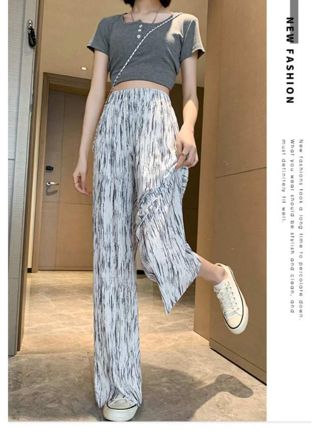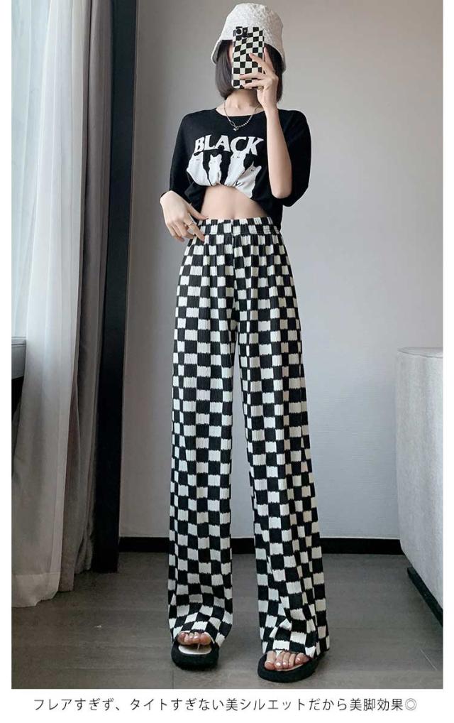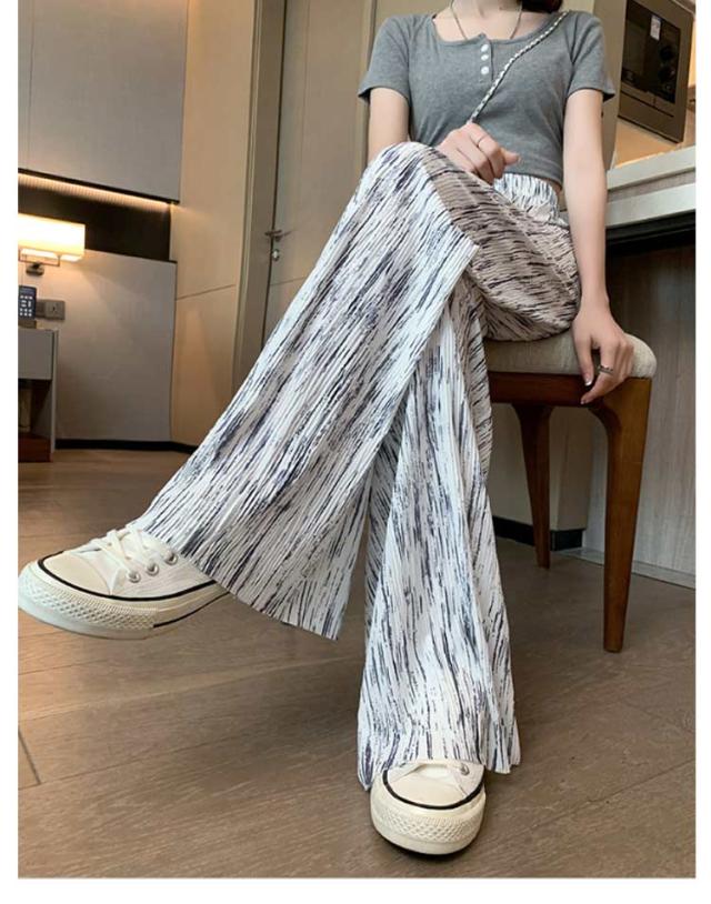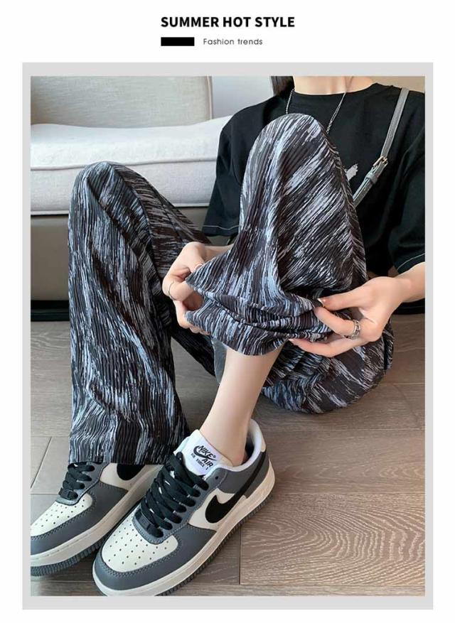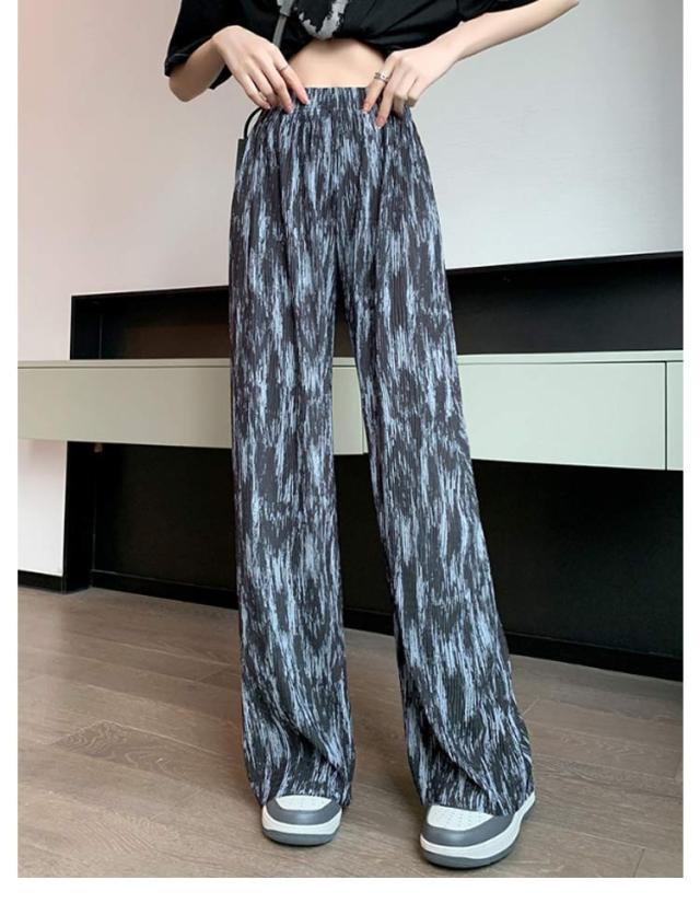 冷感 プリーツパンツ ワイドパンツ イージーパンツ きれいめ ボトムス 体型カバー ロングパンツ 総柄 セルフカット ハサミで切れる ウエストゴム 楽ちん レディース ワイドパンツ 薄手 夏 選べる着丈 大人カジュアル 低身長