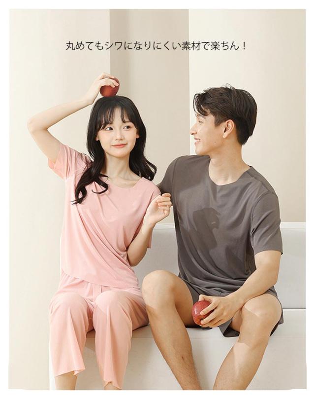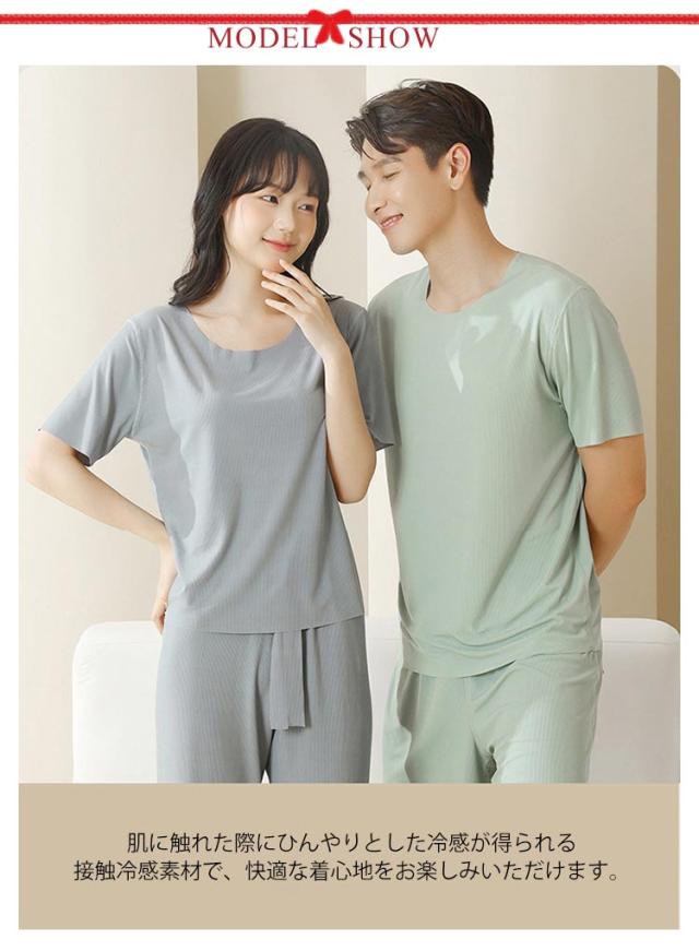 ルームウェア セット レディース メンズ 接触冷感 パジャマ 春夏 部屋着 上下セット 半袖 ハーフパンツ ロングパンツ 抗菌防臭 ゆったり シームレス 可愛い 無地 シンプル ナイトウエア 涼しい ひんやり 男女兼用 寝間着 【送料無料】