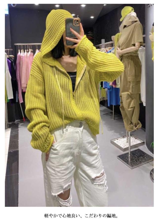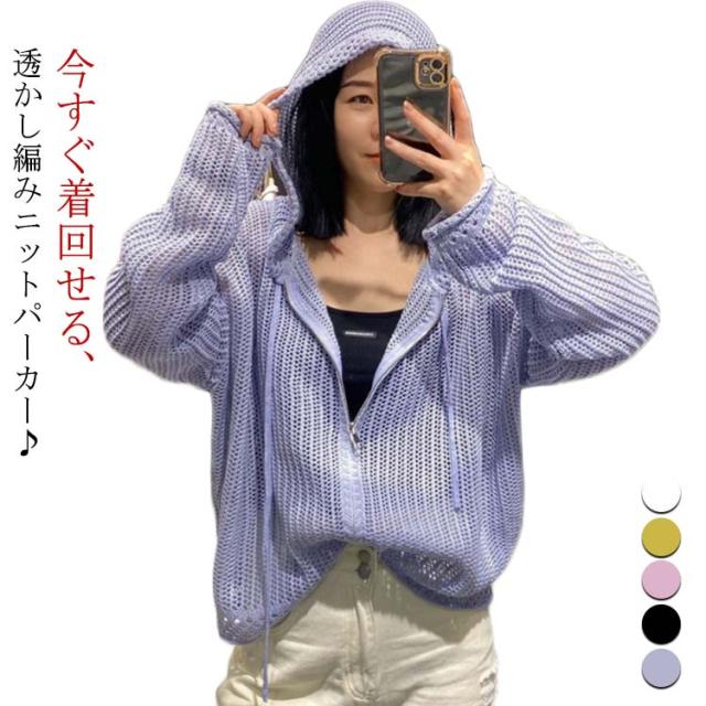 カーディガン ニット メッシュ 長袖 サマーカーディガン レディース カーディガン メッシュニット メッシュ 春 パーカー オーバーサイズ 夏 UV対策 冷房対策 体型カバー カジュアル 秋 ショート丈 透かし編みニット サマーニット