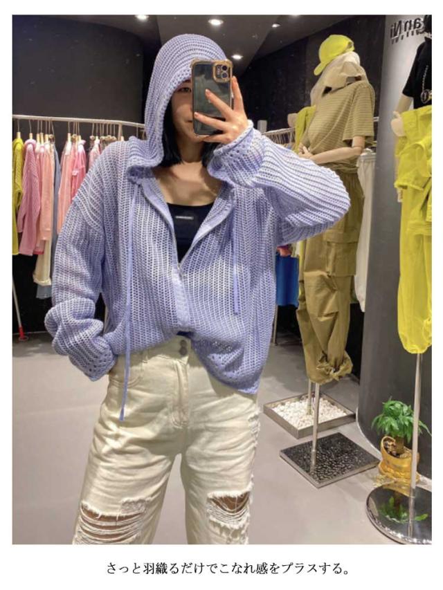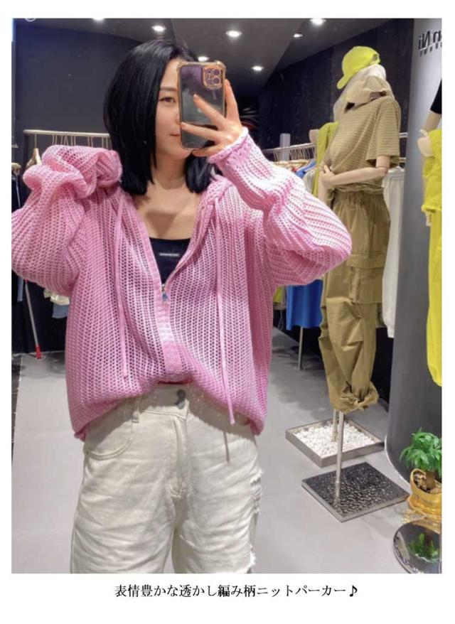 | 今すぐ着回せる、透かし編みニットパーカー♪ さっと羽織るだけでこなれ感をプラスする。 表情豊かな透かし編み柄ニットパーカー♪ ゆるっとシルエットにふんわりパフ袖で、インナーを選ばない優秀item。 ファスナー仕様だから羽織りとしても着られて着回し力抜群。 軽やかで心地良い、こだわりの編地。 程よい厚みで肌触りも良く、ロングシーズン抜け感のあるお洒落を楽しめます。 | |