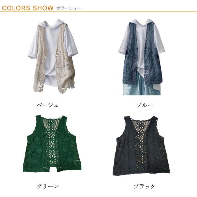 | 夏用 レース重ね着前開きベスト | |