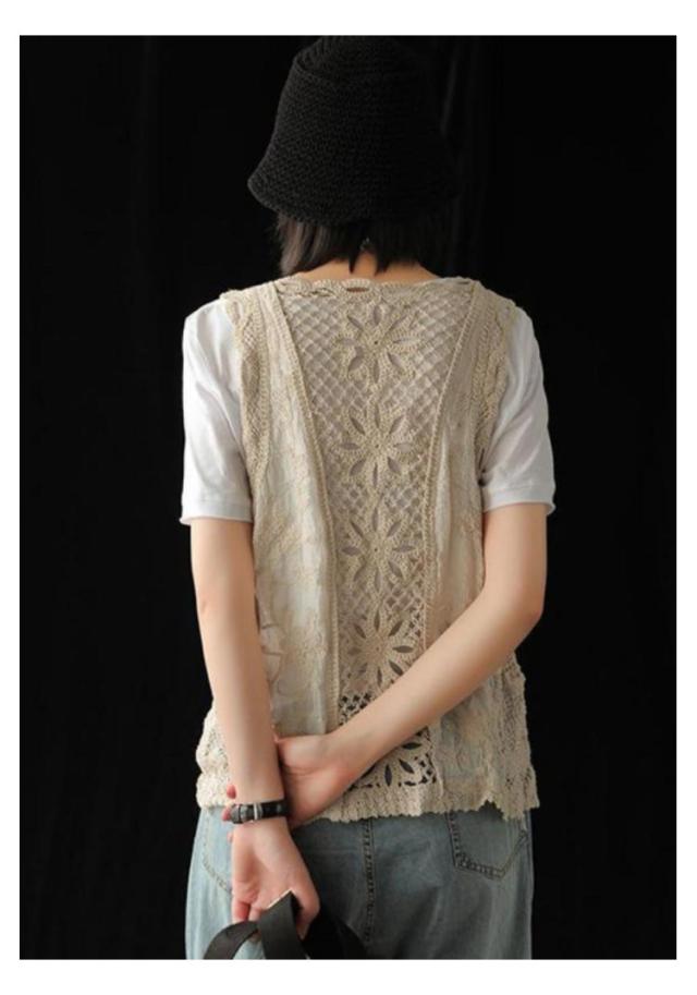 前開きベスト Vネック レディース 前開き レース 透かし編み ベスト ノースリーブ ショート丈 重ね着 花柄 トップス ニット サマーベスト ベスト ジレ レイヤード ゆったり ニットベスト カジュアル おしゃれ 春ベスト アウター 通勤 OL 春 夏