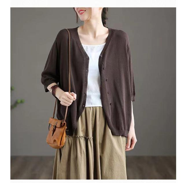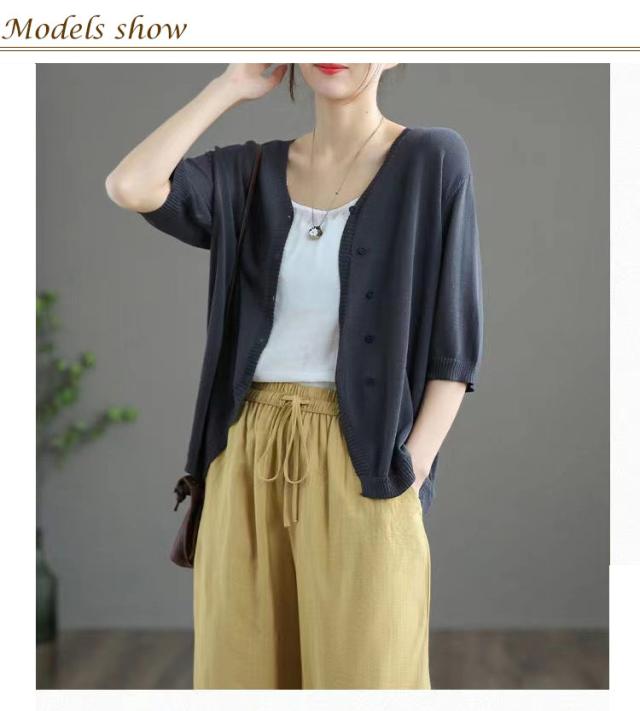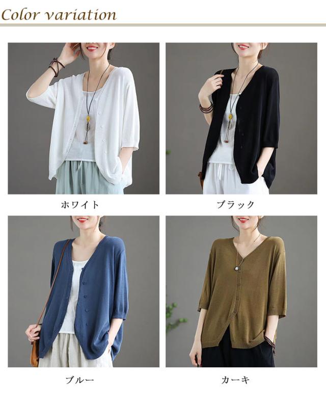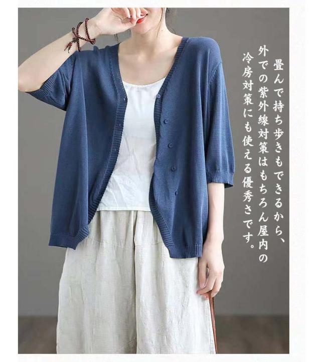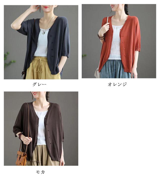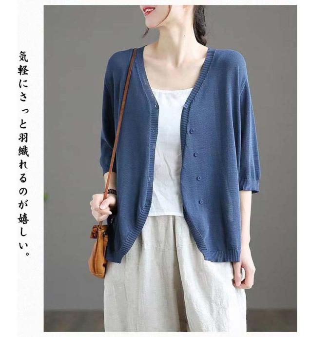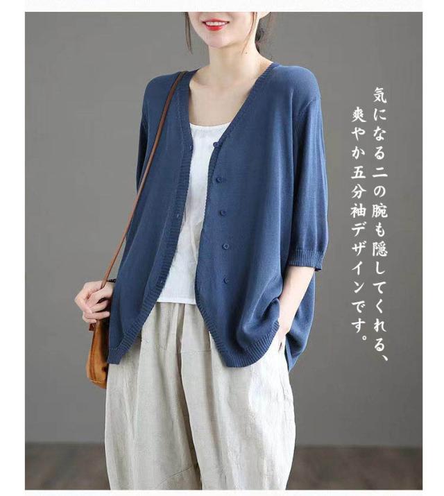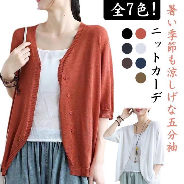 薄手 カーディガン 春夏 トップス 全7色 レディース 羽織 全7色 五分袖 サマーニット ニット カーディガン Vネック ボタン開き シンプル おしゃれ ゆったり 体型カバー ニットカーデ