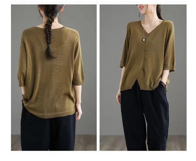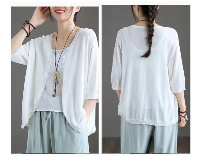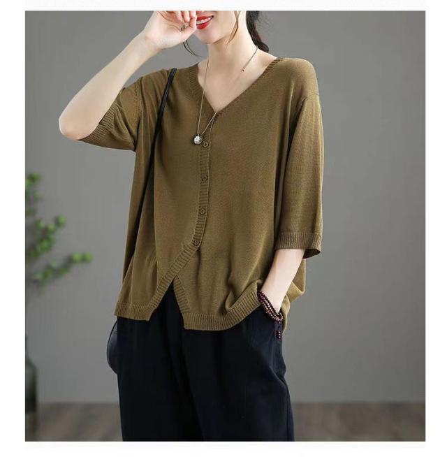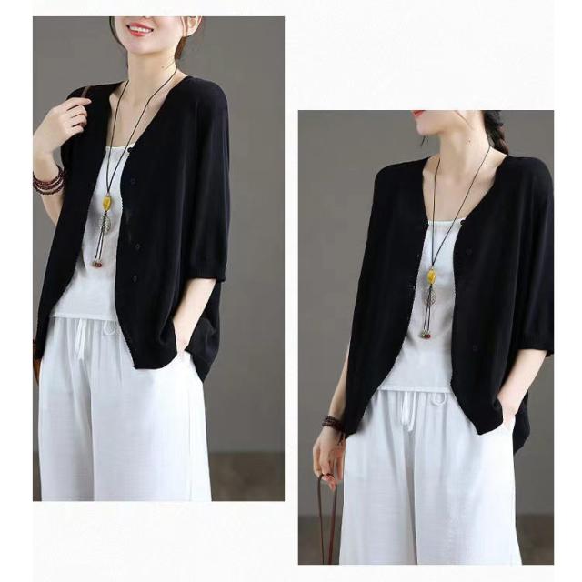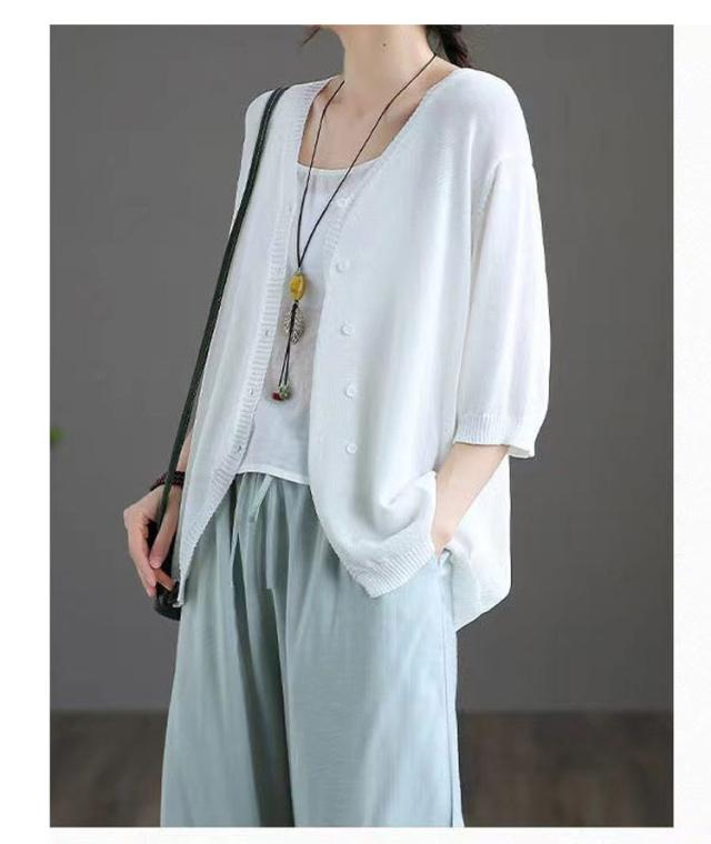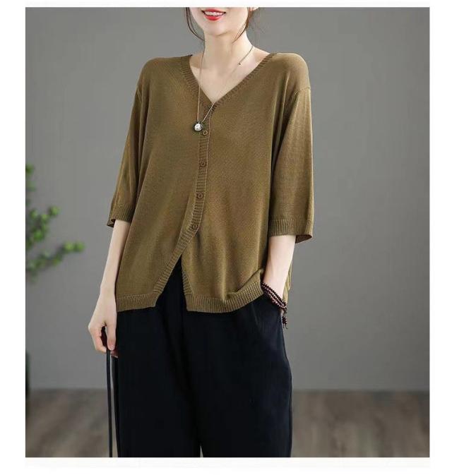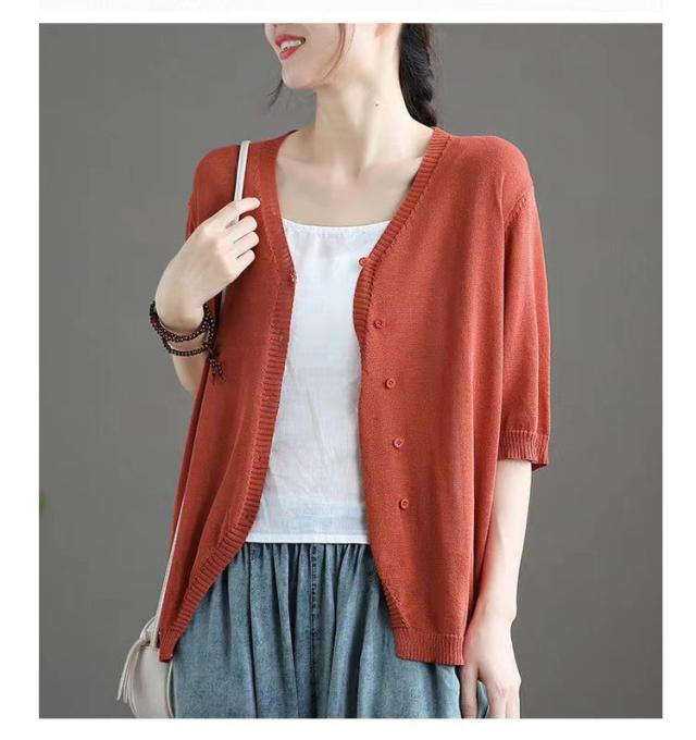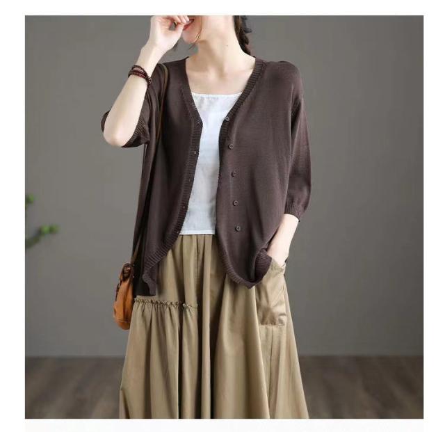 薄手 カーディガン 春夏 トップス 全7色 レディース 羽織 全7色 五分袖 サマーニット ニット カーディガン Vネック ボタン開き シンプル おしゃれ ゆったり 体型カバー ニットカーデ