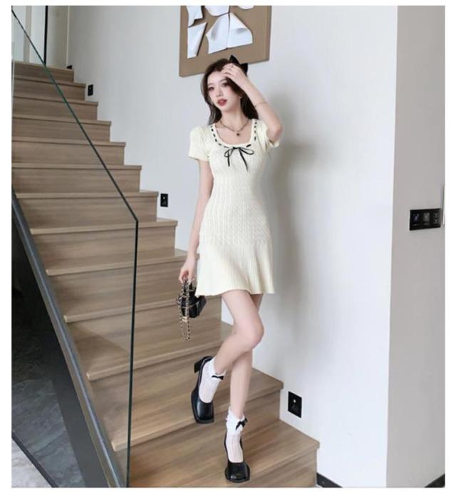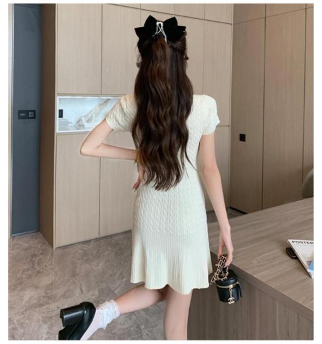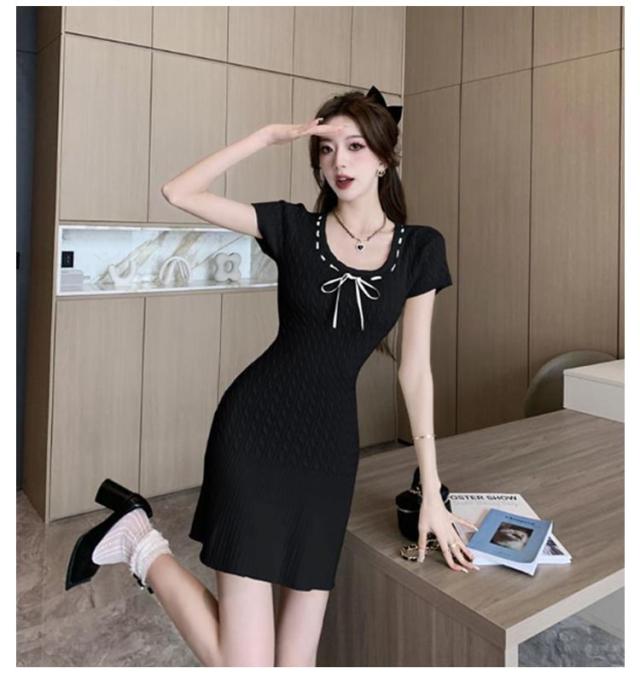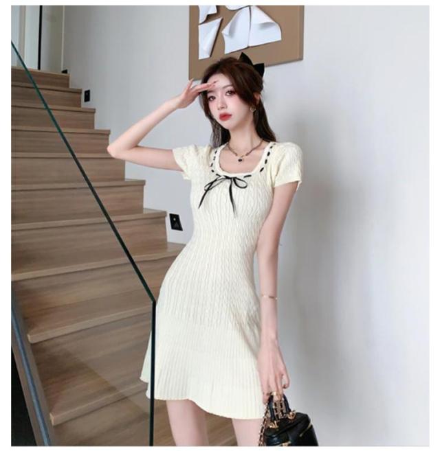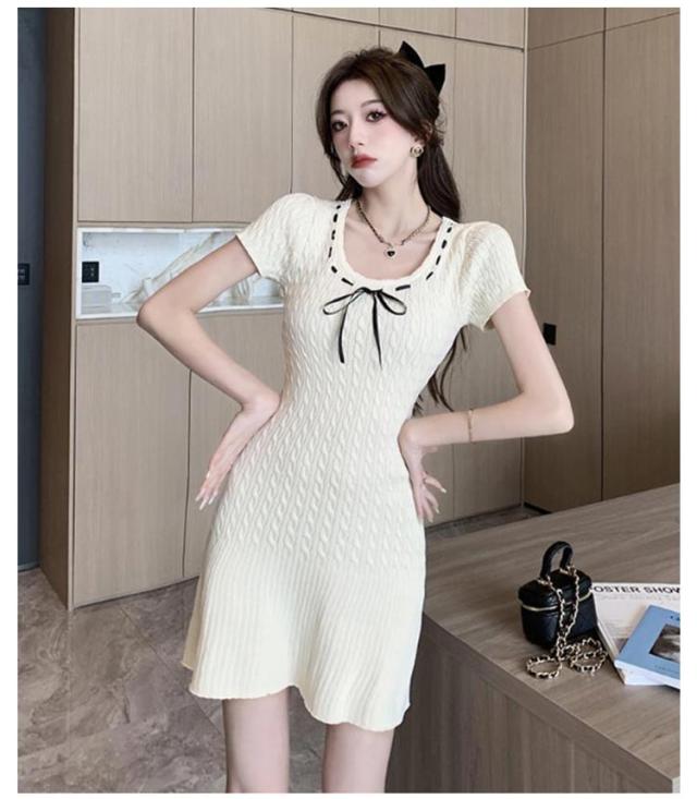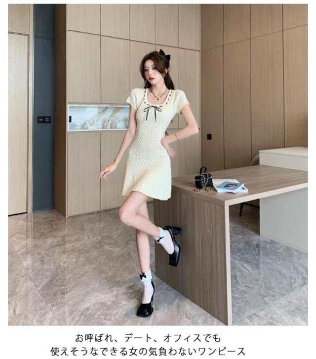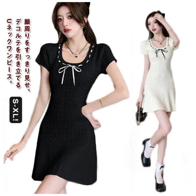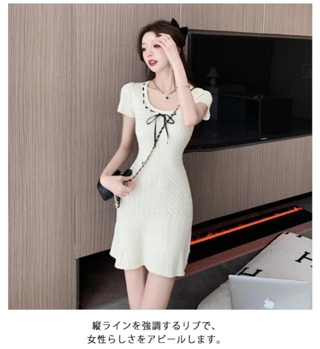 半袖 シンプル リブニット 春 XL ストレッチ ニットワンピース 無地 サマーニット リゾートワンピ リラックスウェア きれいめ レディース 上品 夏ワンピ 細身 おしゃれ 夏 サマーセーター 膝上丈 夏服 韓国 S M L ワンピース