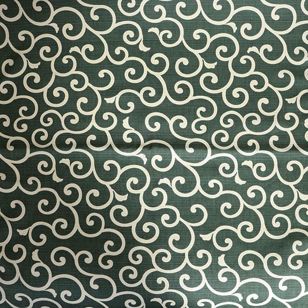深いグリーンの地に白で描かれた唐草模様が特徴で、どこか落ち着きと格式を感じさせるデザインです。