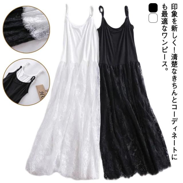 キャミワンピース レディース ロングワンピース タンクトップワンピース 部屋着 レイヤード 重ね着 キャミワンピース レース ペチワンピース ルームウェア インナー 可愛い おしゃれ きれいめ 春夏