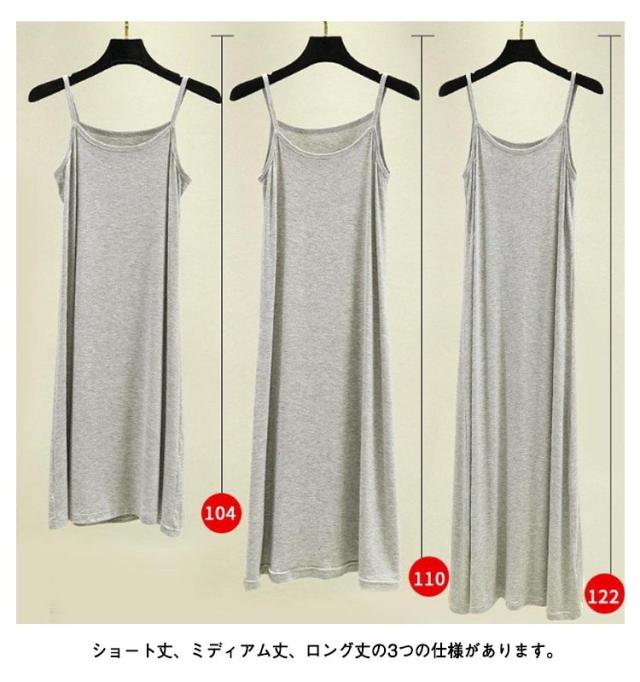 | インナーとペチコートの2枚重ねが不要になる1枚。 モダール素材は通気性抜群で、汗かいてもサラッとした肌触り。 ショート丈、ミディアム丈、ロング丈の3つの仕様があります。 薄手のワンピやカーディガンのインナーに着れば、下着の透けやライン映りを解決します。 さらさらソフトな着用感で、ルームウエアやナイトウエアとしても使える。 | |