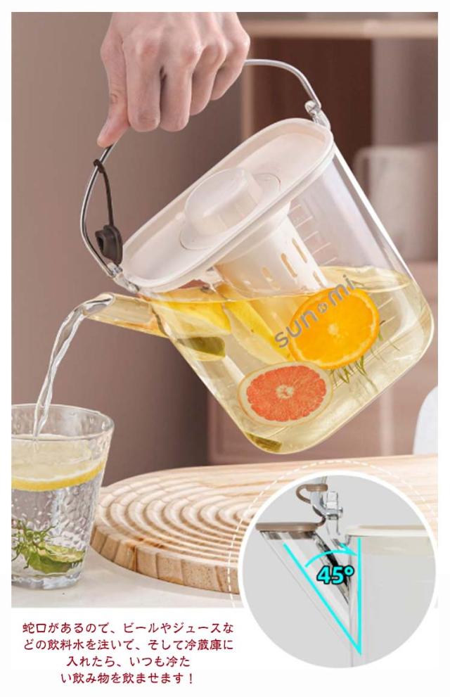 冷蔵庫ポット おしゃれ ピッチャー お茶ポット 冷水筒 冷水筒 冷水ポット 麦茶ポット 台所用品 食品保存 耐熱 おしゃれ 横置き 洗いやすい 冷蔵庫 浄水ポット 持ちやすい ウォーターボトル お茶 ポット