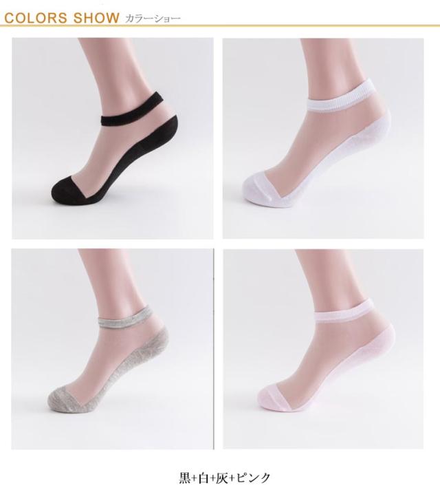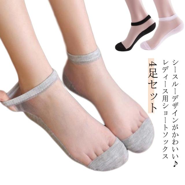 ソックス 送料無料 レディース くるぶしソックス ショートソックス 4足セット おしゃれ レディース 黒 サンダル レディース 薄 ソックス シースルー 靴下 シンプル 無地 かわいい きれいめ 上品 送料無料 女性