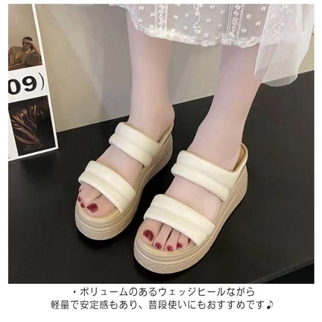 サボ 痛くない サボサンダル 厚底 ウェッジソール ミュール つっかけ レディース 9cmヒール サボサンダル 履きやすい 歩きやすい ダブルストラップ リゾート 旅行